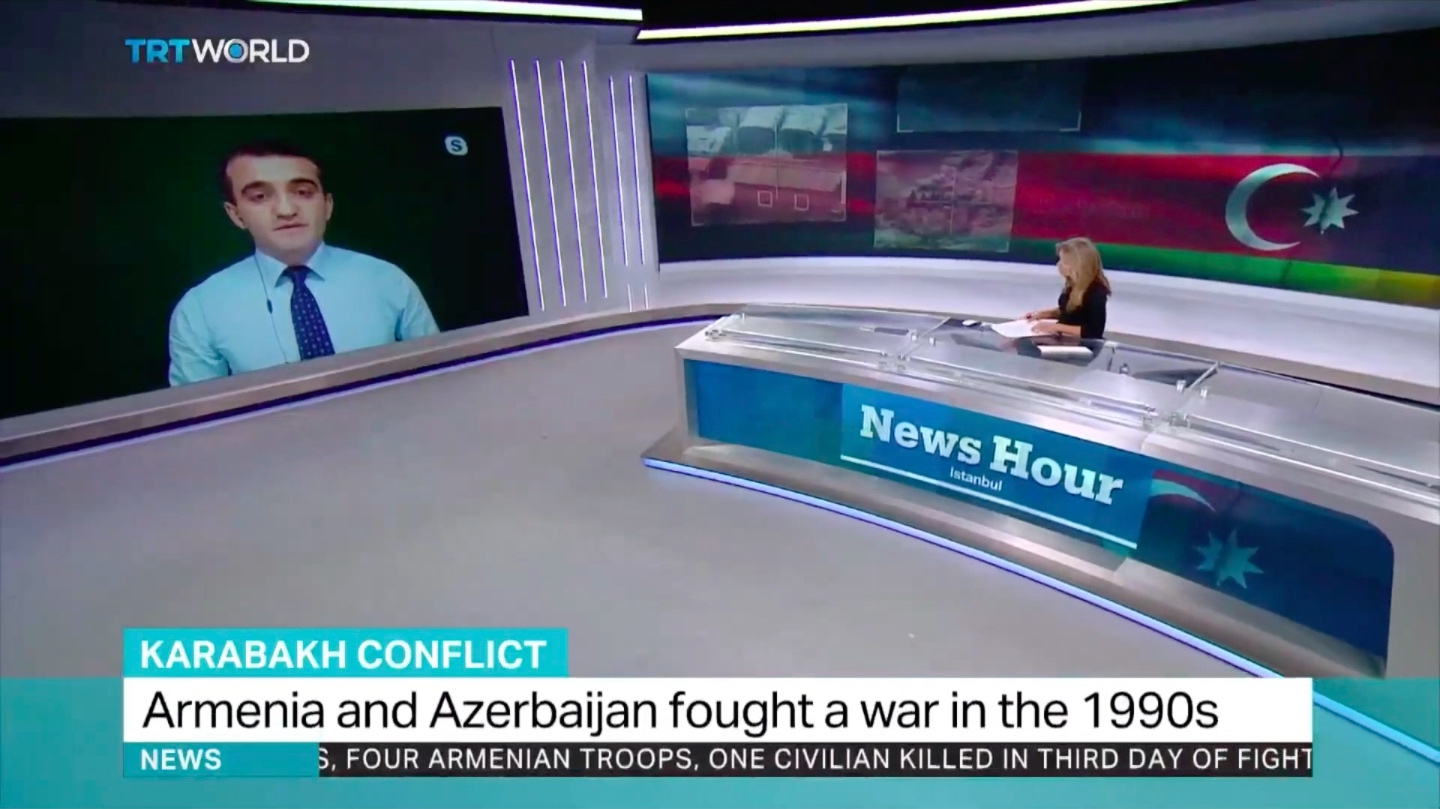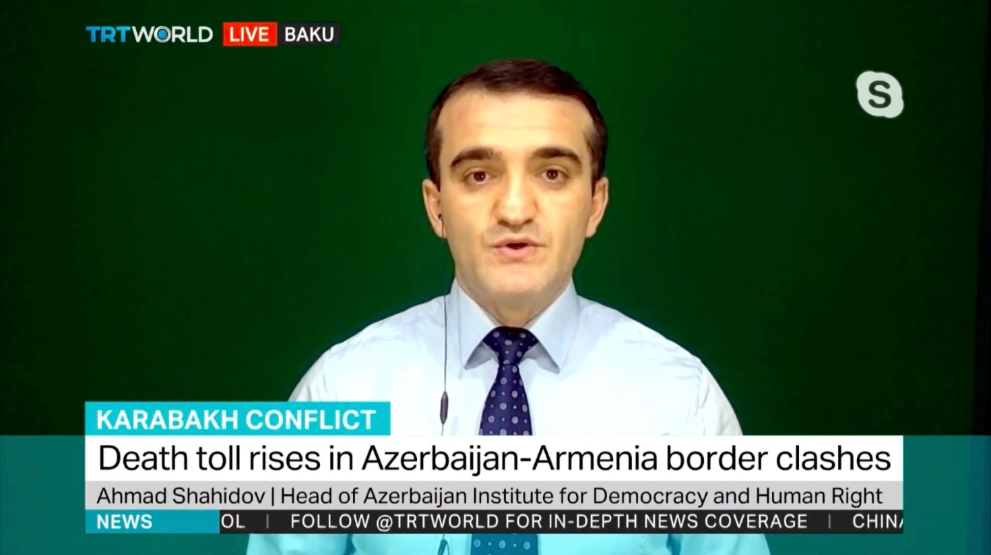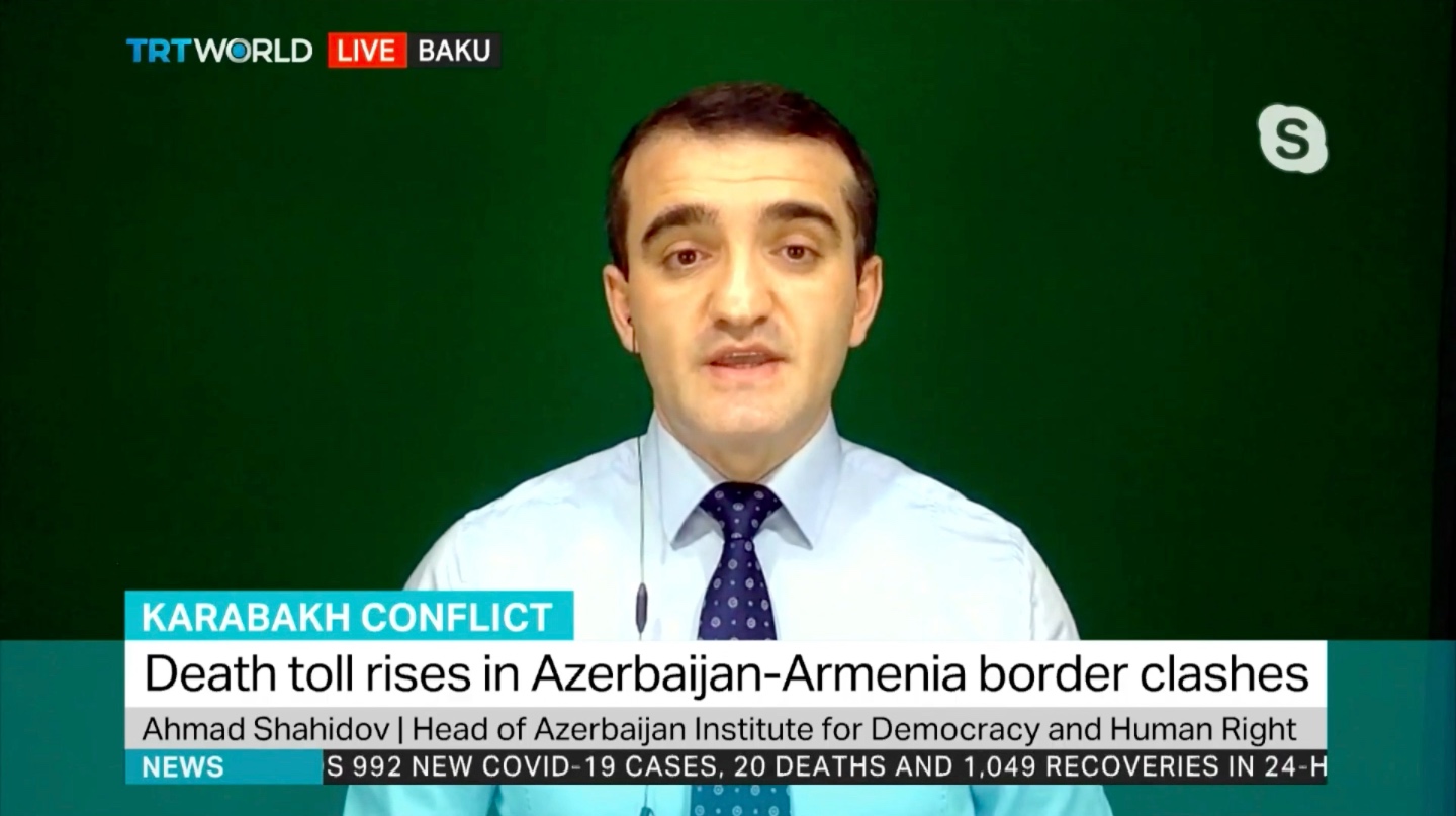TRT World Televiziyasında “Xəbər saatı” verilişində bölgədəki son vəziyyəti şərh edən Azərbaycan Demokratiya və İnsan Haqları İnstitutunun rəhbəri Əhməd Şahidov aparıcı Andrea Sankenin suallarını cavablandırıb.
