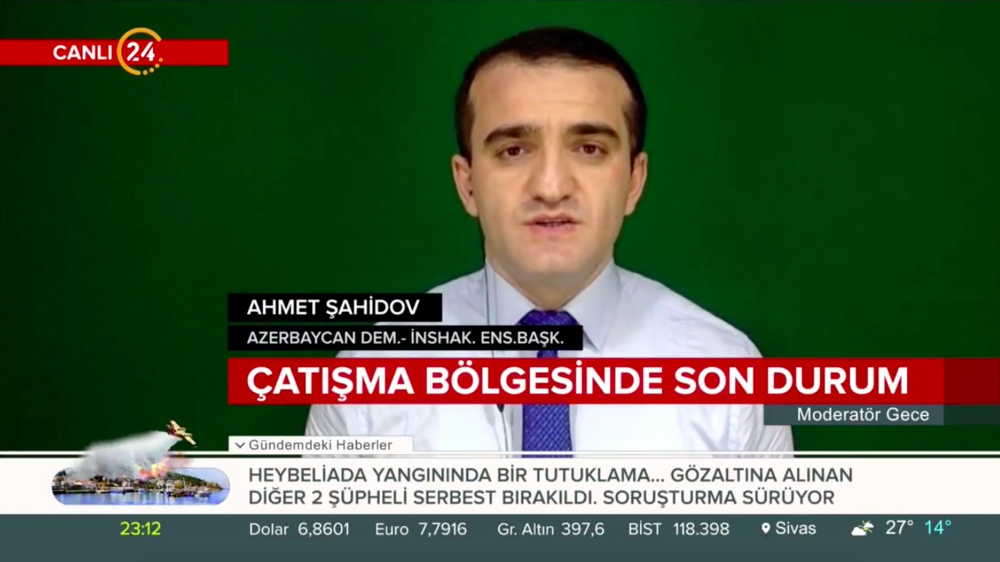 Türkiyənin “Kanal 24” Televiziyasına danışan Azərbaycan Demokratiya və İnsan Haqları İnstitutunun rəhbəri, hüquq müdafiəçisi Əhməd Şahidov “Moderator Gecə” verilişinin aparıcısı Ardan Zentürkün suallarını cavablandırıb və Tovuz rayonundakı son vəziyyəti şərh edib.