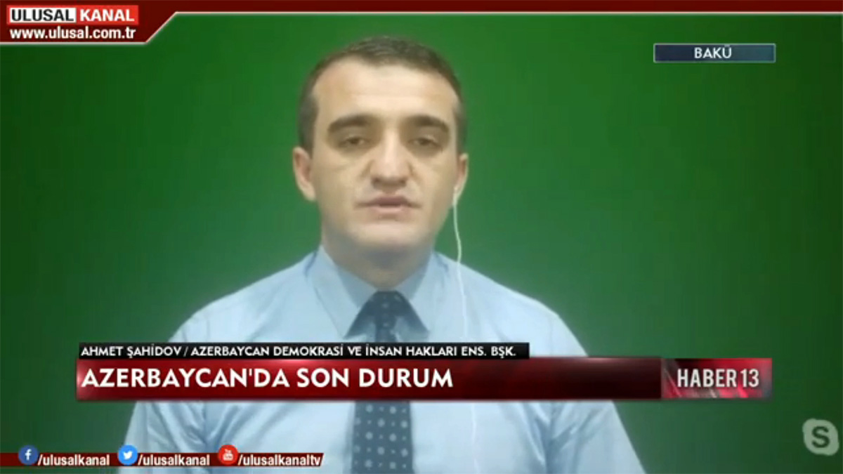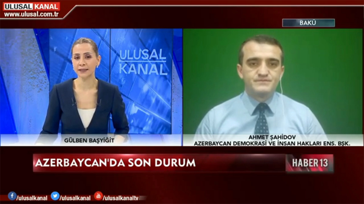 Türkiyənin “Ulusal Kanal” Televiziyasına danışan Azərbaycan Demokratiya və İnsan Haqları İnstitutunun rəhbəri, hüquq müdafiəçisi Əhməd Şahidov “Haber13” proqramında Gülben Başyigitin suallarını cavablandırıb.