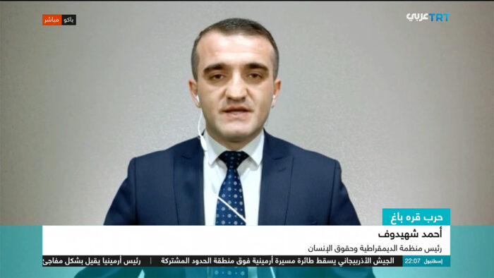 TRT Arabia Televiziyasına danışan Azərbaycan Demokratiya və İnsan Haqları İnstitutunun rəhbəri, hüquq müdafiəçisi Əhməd Şahidov Ermənistanın işğal etdiyi bütün torpaqlardan çıxmalı olduğunu və Azərbaycan Respublikasının ərazi bütövlüyünün bərpa olunmasının zəruliyini bildirib. Və yalnız bundan sonra tərəflər arasında hər hansı sülh danışıqlarının mümkünlüyünü vurğulayıb.