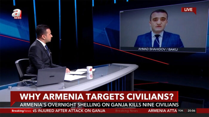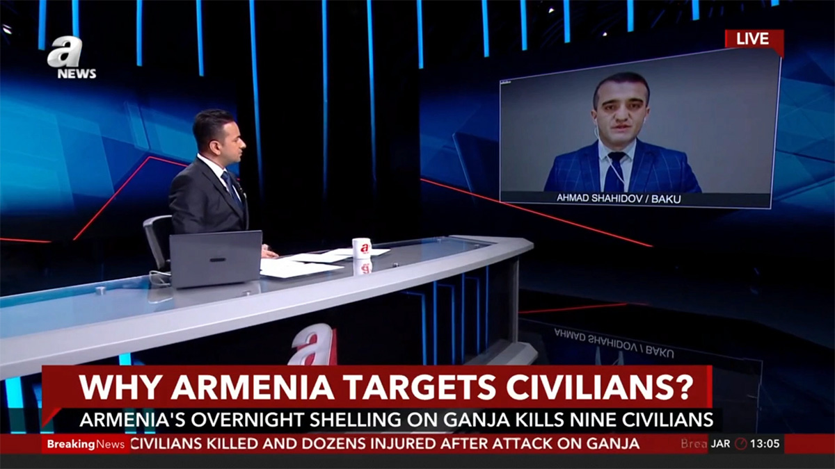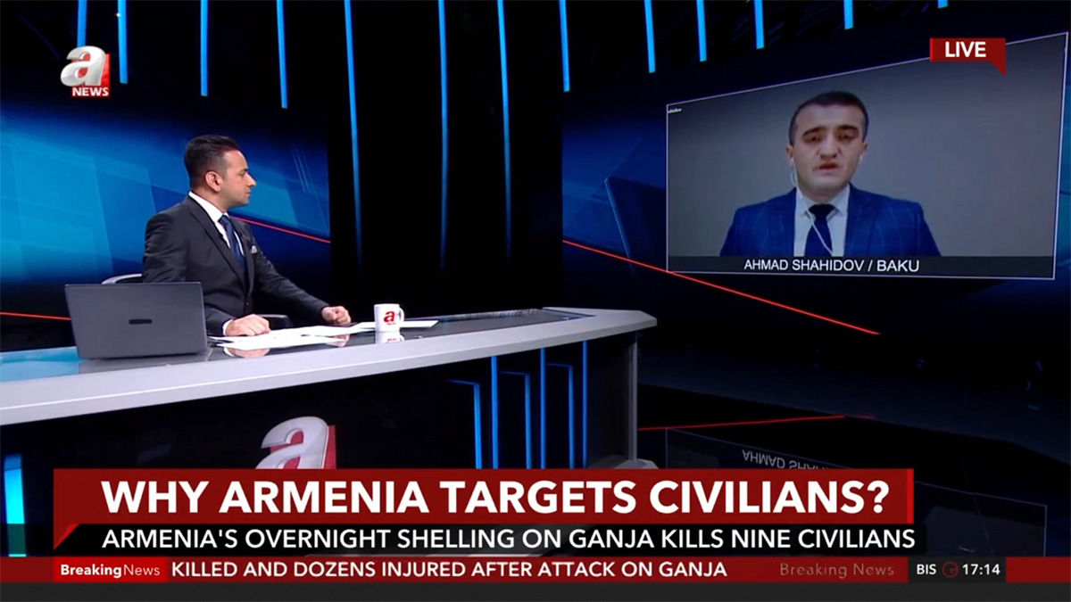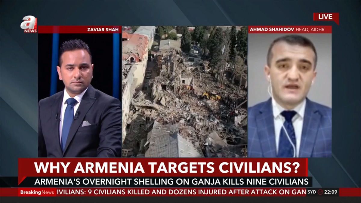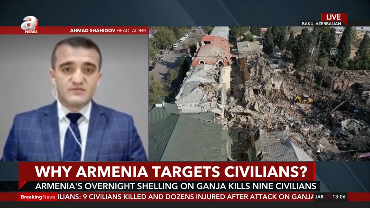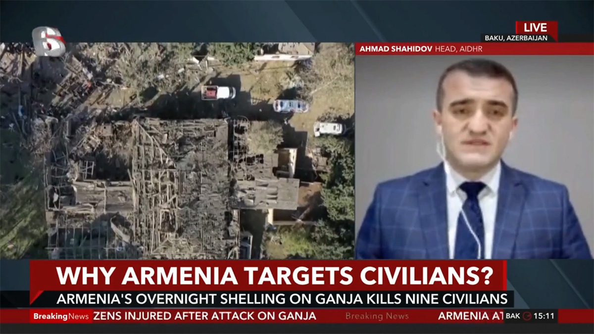 ANews Kanalına müsahibə verən Azərbaycan Demokratiya və İnsan Haqları İnstitutunun rəhbəri, hüquq müdafiəçisi Əhməd Şahidov bildirib ki, humanitar atəşkəs razılaşmasından sonra Ermənistan silahlı qüvvələri tərəfindən dinc sakinlərin və şəhərlərin atəşə tutulması barbarlığın daha bir bariz nümunəsidir və Ermənistan rəhbərliyinin atəşkəs çağırışları ikiüzlülükdən başqa bir şey deyil.
