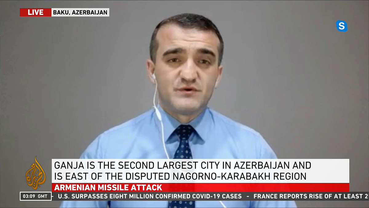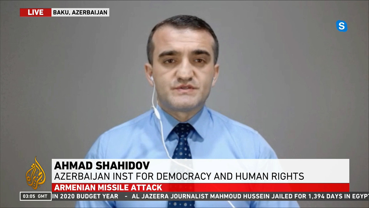 Al Jazeera English kanalına müsahibə verən Azərbaycan Demokratiya və İnsan Haqları İnstitutunun rəhbəri, hüquq müdafiəçisi Əhməd Şahidov bildirib ki, Ermənistan silahlı birləşmələri bugün Mingəçevir şəhərinə də raket zərbələri endiriblər. Bu hücumlar nəticəsində ən azı 47 nəfər həlak olub və 222 nəfər ağır yaralanıb, – Əhməd Şahidov əlavə edib.