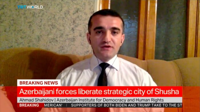 TRT World Televiziyasına müsahibə verən Azərbaycan Demokratiya və İnsan Haqları İnstitutunun rəhbəri, hüquq müdafiəçisi Əhməd Şahidov bildirib ki, Ermənistan bugün çıxılmaz bir durumdadır və artıq öz məğlubiyyəti ilə barışıb: “Danışıqlara başlamaq üçün Azərbaycan tərəfinin şərtləri dəyişilməz olaraq qalır. Ermənistan hökuməti rəsmi surətdə Azərbaycanın ərazi bütövlüyünü tanımalıdır və öz qoşunlarını Dağlıq Qarabağ və ətraf ərazilərdən çıxarmalıdır. Yalnız bundan sonra sülh danışıqları mümkün ola bilər. Əks halda müharibə davam edəcək və Azərbaycan tam qətiyyətli şəkildə öz torpaqlarını işğaldan azad etməkdə qərarlıdır. Bu, Azərbaycanın suveren hüququdur və Azərbaycan sonadək mübarizə aparacaq ki, beynəlxalq səviyyədə tanınmış sərhədlərinin təhlükəsizliyini təmin etsin.”