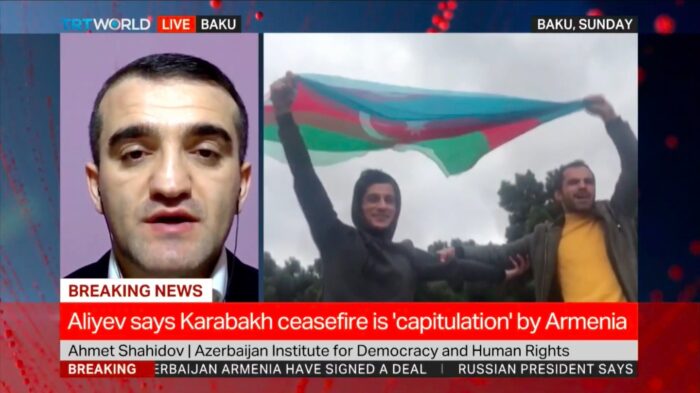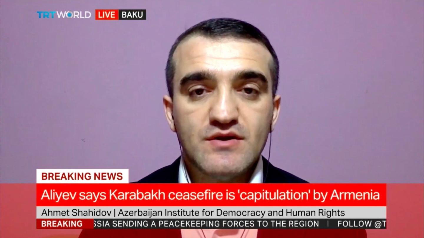 Mövzu ilə bağlı TRT World Televiziyasına müsahibə verən Azərbaycan Demokratiya və İnsan Haqları İnstitutunun rəhbəri, hüquq müdafiəçisi Əhməd Şahidov bildirdi ki, bugün imzalanan müqavilə regionda uzun müddətli sülhün bərqərar olması məqsədi daşıyır: “Rusiyanın bu münaqişədə həlledici rol oynayacağı gözlənilən idi. Düşünürəm ki, Türkiyə də gələcək danışıqlarda yaxından iştirak etməlidir. Bu müqavilə Azərbaycan tərəfinin uzun illər ərzində irəli sürdüyü şərtlərin həyata keçməsidir. Əfsuslar olsun ki, Ermənistan indiyə kimi beynəlxalq hüququn tələblərini yerinə yetirməyi və sülh danışıqlarına başlamağı rədd edirdi. Nəhayət ki, bugün Nikol Paşinyan hökuməti reallıqları qəbul etməyə məcbur edildi.”