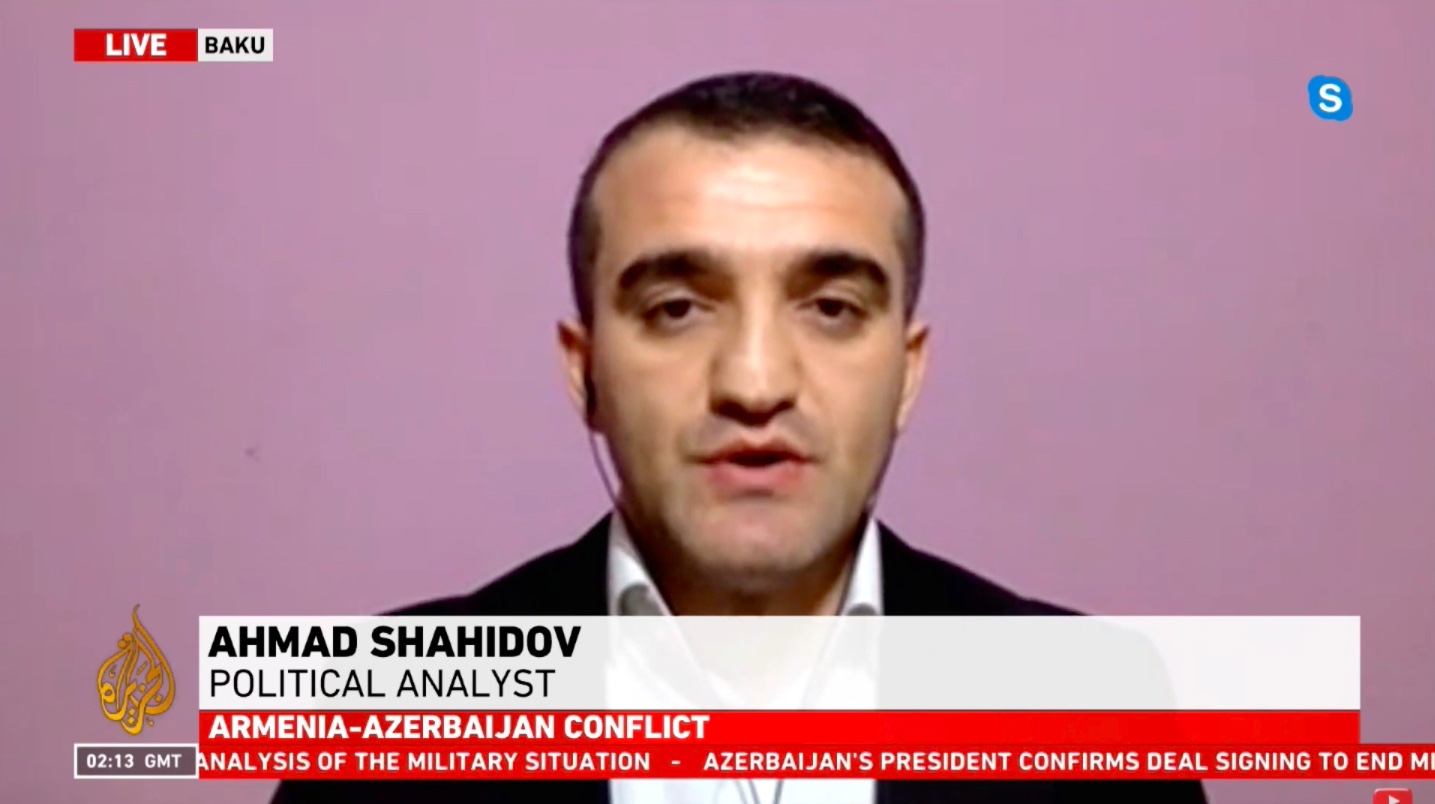Mövzu ilə bağlı Əl Cəzirə Televiziyasına müsahibə verən Azərbaycan Demokratiya və İnsan Haqları İnstitutunun rəhbəri, hüquq müdafiəçisi Əhməd Şahidov bildirdi ki, bugün imzalanan müqavilə regionda uzun müddətli sülhün bərqərar olması məqsədi daşıyır: “Rusiyanın bu münaqişədə həlledici rol oynayacağı gözlənilən idi. Düşünürəm ki, Türkiyə də gələcək danışıqlarda yaxından iştirak etməlidir. Bu müqavilə Azərbaycan tərəfinin uzun illər ərzində irəli sürdüyü şərtlərin həyata keçməsidir. Əfsuslar olsun ki, Ermənistan indiyə kimi beynəlxalq hüququn tələblərini yerinə yetirməyi və sülh danışıqlarına başlamağı rədd edirdi. Nəhayət ki, bugün Nikol Paşinyan hökuməti reallıqları qəbul etməyə məcbur edildi.”