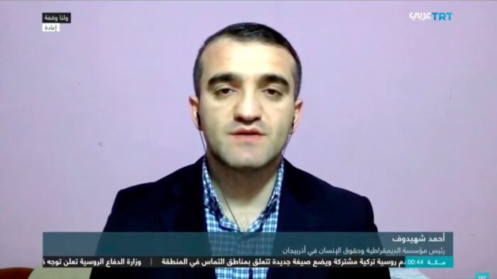 Mövzu ilə bağlı TRT Arabia Televiziyasına müsahibə verən Azərbaycan Demokratiya və İnsan Haqları İnstitutunun rəhbəri, hüquq müdafiəçisi Əhməd Şahidov bildirdi ki, bugün imzalanan müqavilə regionda uzun müddətli sülhün bərqərar olması məqsədi daşıyır: “Rusiyanın bu münaqişədə həlledici rol oynayacağı gözlənilən idi. Düşünürəm ki, Türkiyə də gələcək danışıqlarda yaxından iştirak etməlidir. Bu müqavilə Azərbaycan tərəfinin uzun illər ərzində irəli sürdüyü şərtlərin həyata keçməsidir. Əfsuslar olsun ki, Ermənistan indiyə kimi beynəlxalq hüququn tələblərini yerinə yetirməyi və sülh danışıqlarına başlamağı rədd edirdi. Nəhayət ki, bugün Nikol Paşinyan hökuməti reallıqları qəbul etməyə məcbur edildi.”