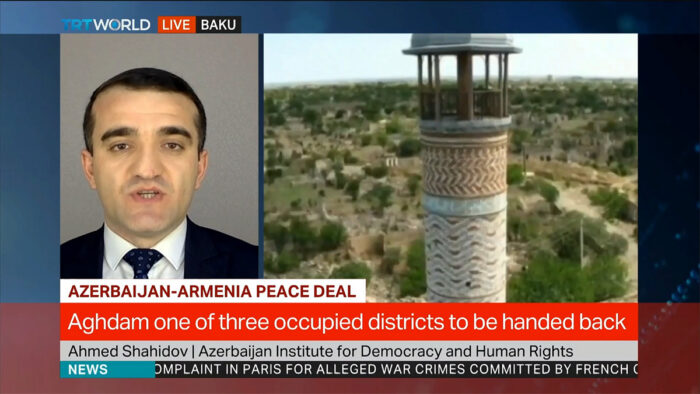Bununla bağlı TRT World Televiziyasına müsahibə verən Azərbaycan Demokratiya və İnsan Haqları İnstitutunun rəhbəri, hüquq müdafiəçisi Əhməd Şahidov bildirib ki, 27 ildən sonra Ağdam şəhərində ilk dəfə azan səsi eşidilib: “Azərbaycan dövləti Ağdam şəhərini də bərpa edəcək. Əlbəttə, geniş miqyaslı işlər görüləcək burada. Şəhərin baş planı hazırlanacaq və təcrübəli mütəxəssislər bu işə cəlb olunacaq. İnfrastruktur layihələri, ofis binaları, sosial təsisatlar, yollar qurulacaq və digər zəruri işlər ardıcıl şəkildə həyata keçiriləcək. Azərbaycan dövləti vətəndaşların o ərazilərə geri dönməsinə dəstək göstərəcək. Ağdam şəhərinin bərpa olunması Azərbaycanın xüsusi diqqətindədir, çünki bu rayon həm ərazisinə, həm də əhalisinin sayına görə böyük bir inzibati ərazi vahididir”