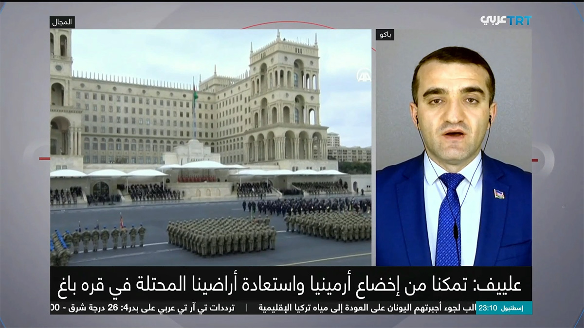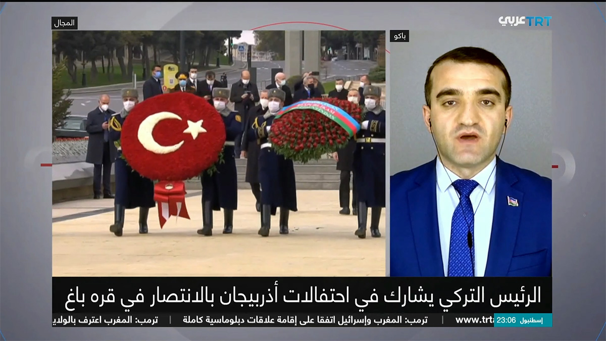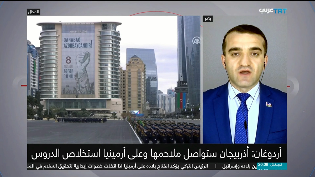 Azərbaycan Demokratiya və İnsan Haqları İnstitutunun rəhbəri, hüquq müdafiəçisi Əhməd Şahidov TRT Arabia Televiziyasına müsahibəsində bildirib ki, hər zaman Azərbaycanın yanında olan qardaş Türkiyə bugünkü sevincli gündə də Azərbaycanın yanındadır: “Türkiyə-Azərbaycan münasibətləri misilsizdir dünyada. Biz sözün əsl mənasında bir millət, iki dövlətik və bunu bugünkü hərbi paradda bir daha nümayiş etdirdik. Türkiyə bütün təzyiqlərə baxmayaraq, hər zaman Azərbaycanın yanında olub və bugün də Azərbaycanın yanında olan yeganə ölkədir.”