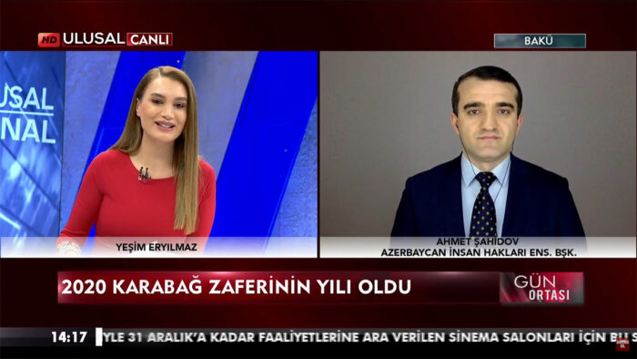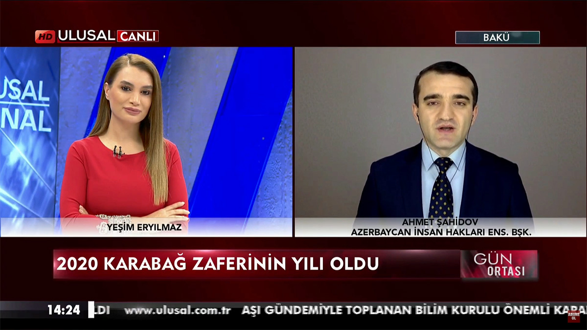 Türkiyənin Ulusal Kanal Televiziyasına müsahibə verən Azərbaycan Demokratiya və İnsan Haqları İnstitutunu rəhbəri Əhməd Şahidov tanınmış aparıcı Yeşim Eryılmazın suallarını cavablandırıb.