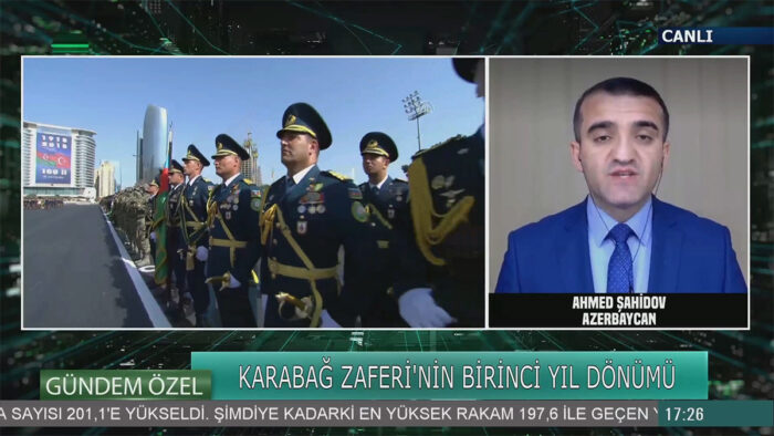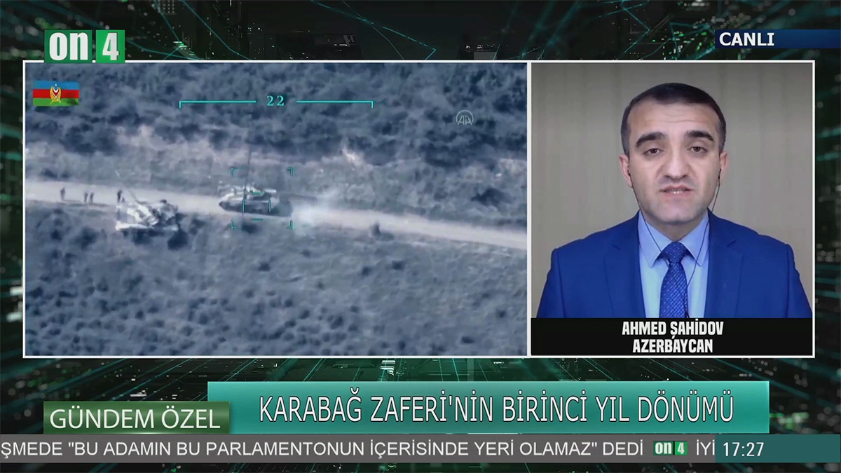 Bununla bağlı Türkiyənin ON4 Televiziyasında çıxış edən siyasi şərhçi Əhməd Şahidov 44 günlük İkinci Qarabağ Müharibəsinin gedişi və əldə edilən böyük qələbə barədə danışıb.