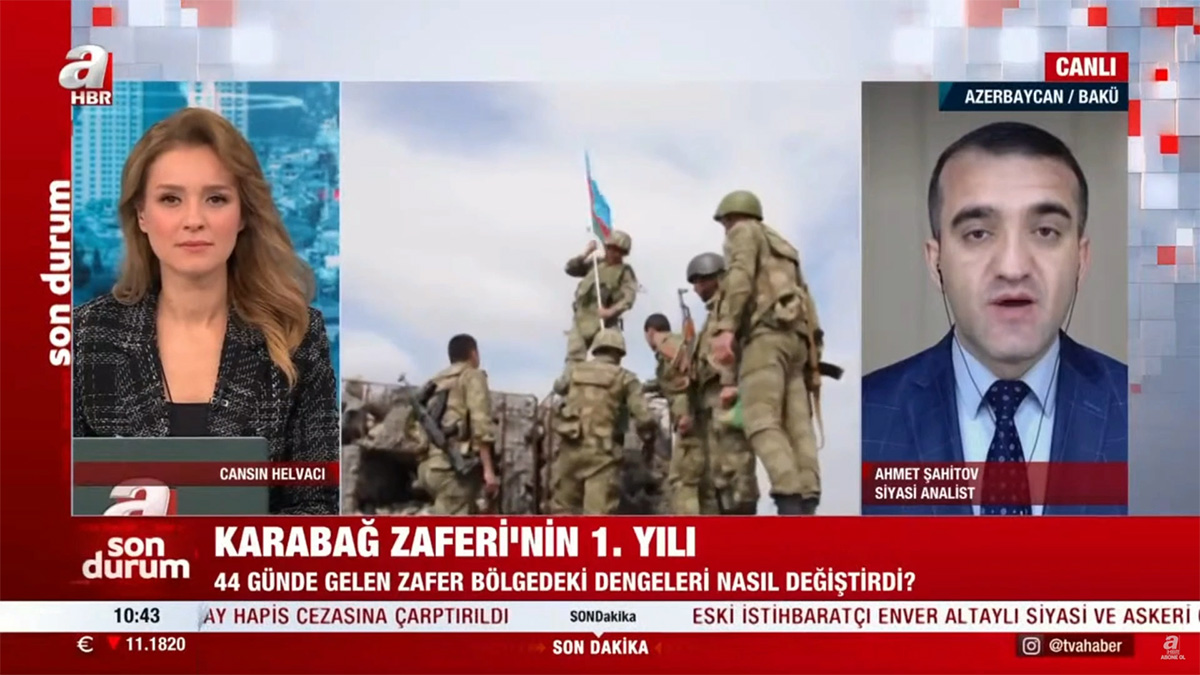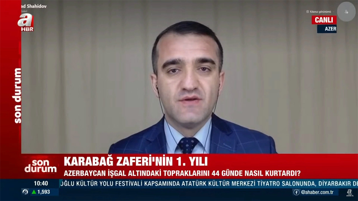 Bununla bağlı Türkiyənin AHaber Televiziyasında çıxış edən siyasi şərhçi Əhməd Şahidov 44 günlük İkinci Qarabağ Müharibəsinin gedişi və əldə edilən böyük qələbə barədə danışıb.
