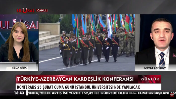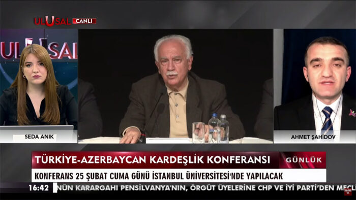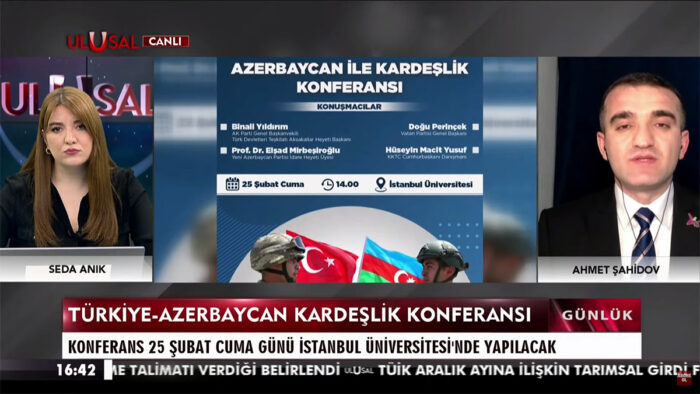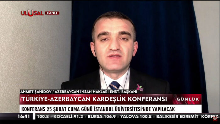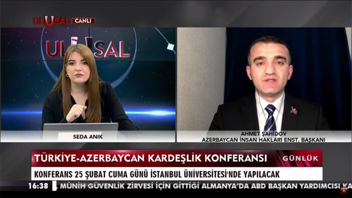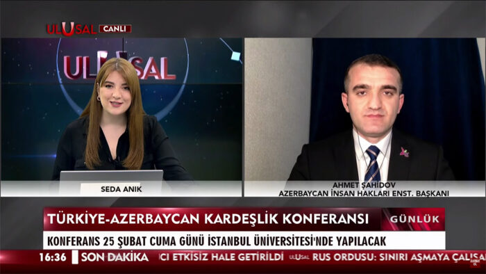Ulusal Kanala danışan Azərbaycan Demokratiya və İnsan Haqları İnstitutunun rəhbəri Əhməd Şahidov fevralın 25-də İstanbulda keçiriləcək “Azərbaycanla Qardaşlıq Konfransı”nın əhəmiyyətindən danışıb.