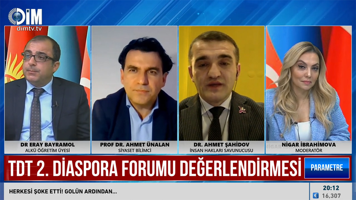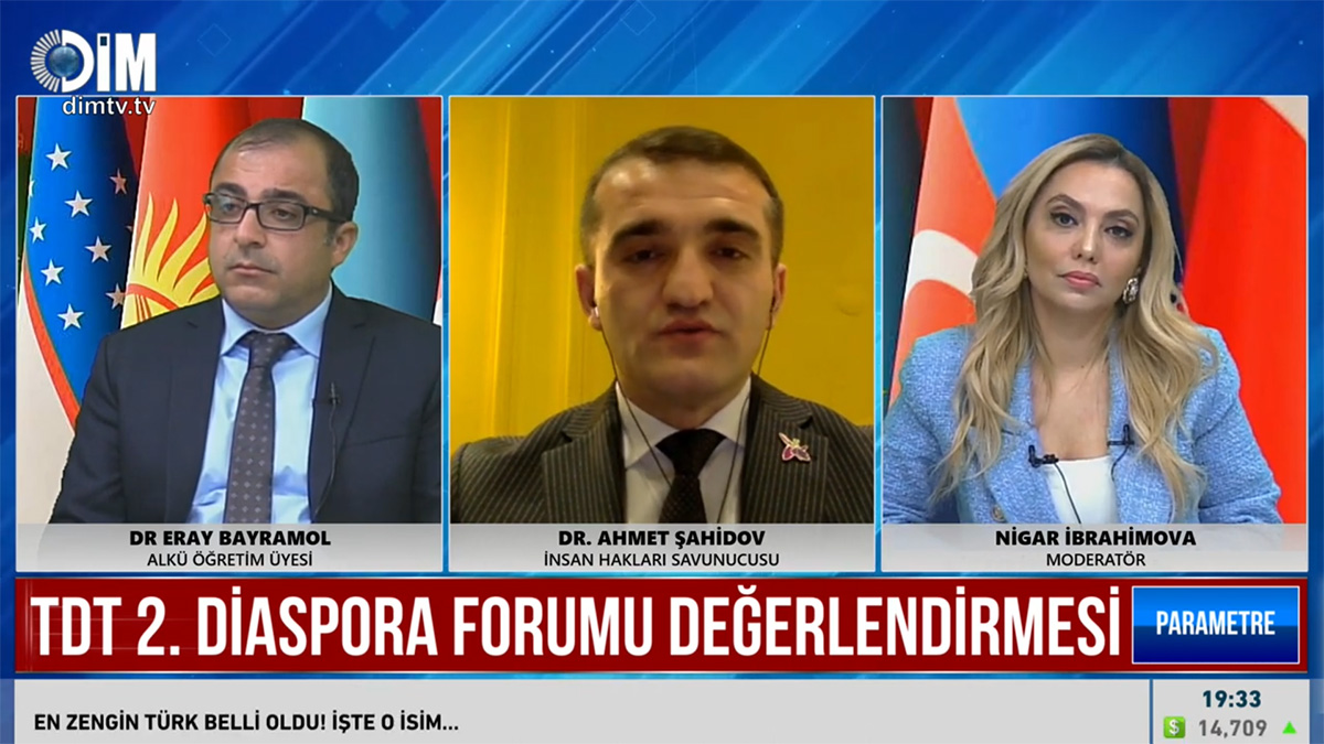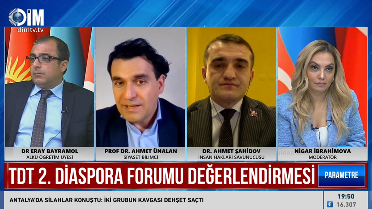 DİM Televiziyasının “Parametr” verilişində II Diaspor Forumu müzakirə edilib, aparıcı Nigar İbrahimovanın qonaqları Dr. Eray Bayramol, Prof. Dr. Ahmet Ünalan və Dr. Əhməd Şahidov olub.
