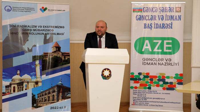 Aprelin 29-da Gəncə şəhəri Məhsəti Gəncəvi adına Mədəniyyət Mərkəzində “İslahatçı Gənclər” İctimai Birliyinin təşkilatçılığı və Qeyri-Hökumət Təşkilatlarına Dövlət Dəstəyi Agentliyinin dəstəyi ilə “Dini radikalizm və ekstremizmə qarşı mübarizədə gənclərin rolunun artırılması” adlı tədbir keçirilib.
