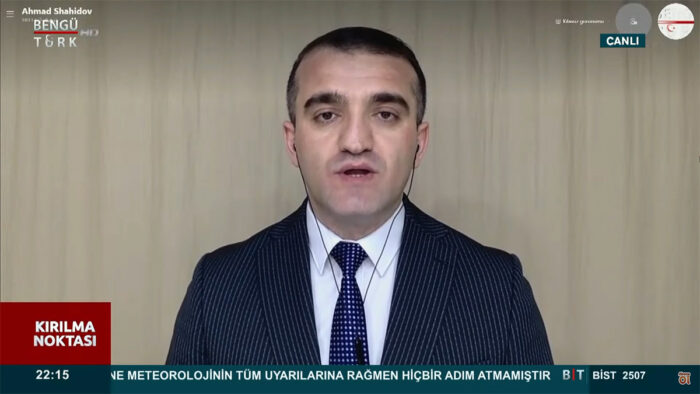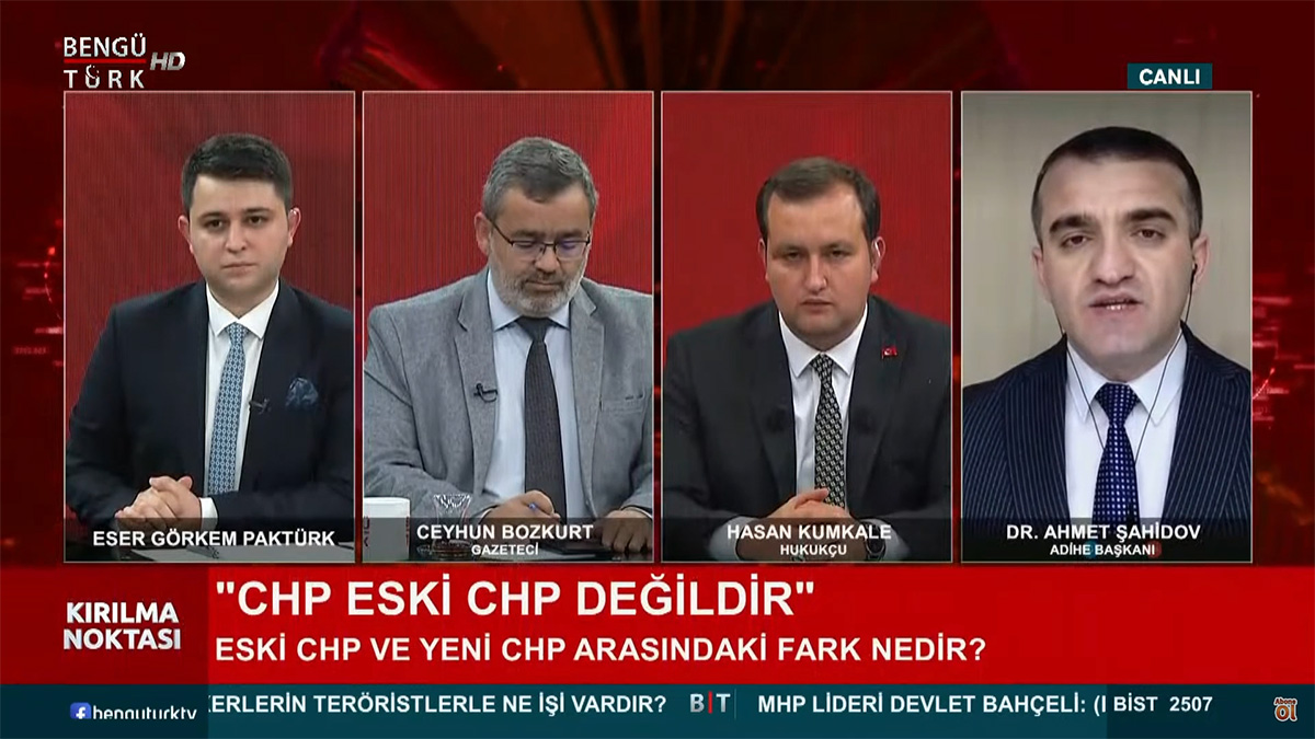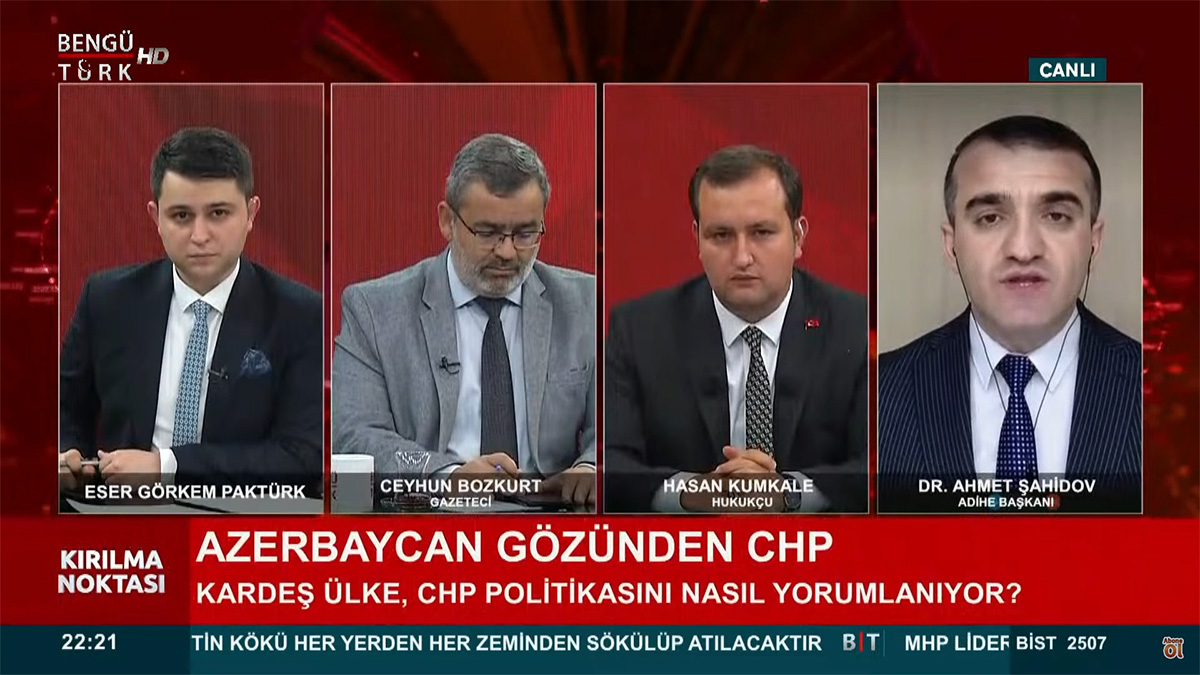BengüTürk kanalının “Kırılma Noktası” verilişində Eser Görkem Paktürkün qonağı olan Azərbaycan Demokratiya və İnsan Haqları İnstitutunun rəhbəri Əhməd Şahidov Türkiyə ilə Azərbaycan arasında müttəfiqlik münasibətlərinə toxunub.