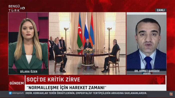 Mövzu ilə bağlı BengüTürk kanalına danışan politoloq Əhməd Şahidov bildirib ki, Soçidə keçirilən Putin-Əliyev-Paşinyan görüşündən ciddi nəticə gözləməyə ehtiyac yoxdur: “Çünki bu görüş yalnız Rusiyanın regionda təsir mexanizmini saxlamaq üçündür və ABŞ və Avropaya bir cavabdır. Bundan əvvəl ABŞ və Avropada Azərbaycanla Ermənistan arasında danışıqlar aparılıb və rəsmi Vaşinqton və Avropa İttifaqı da vasitəçilik missiyasını həyata keçirməyə çalışır. Təbii ki, bu, Rusiyanın Cənubi Qafqazdakı maraqlarına ziddir. Bu kontekstdə Vladimir Putin vaxtaşırı Əliyev və Paşinyanla görüşərək Rusiyanın bu münaqişədə yeganə vasitəçi ola biləcəyini göstərməyə çalışır”.