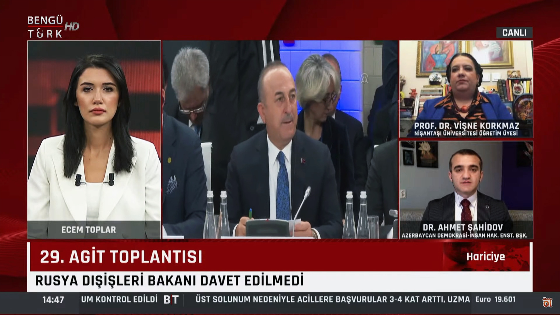 BengüTürk kanalında yayımlanan “Hariciye” proqramında Ukrayna-Rusiya müharibəsi, Türkiyənin bu müharibədəki mövqeyi və ATƏT Xarici İşlər Nazirləri Polşa Zirvə toplantısında alınan qərarlar müzakirə edilib.