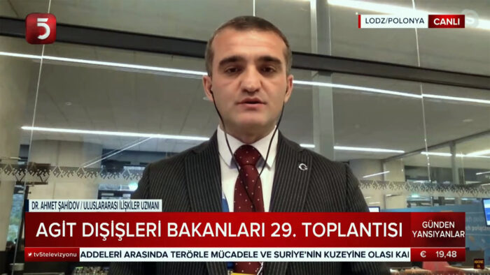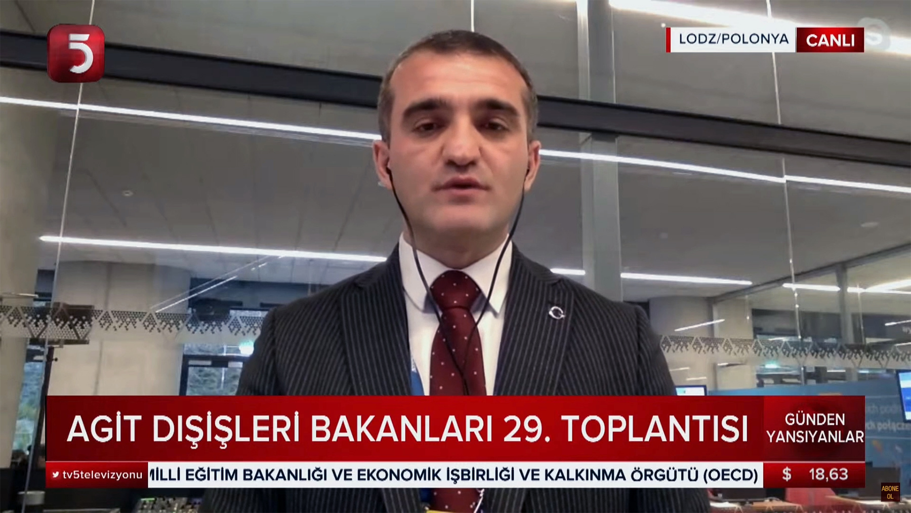 ATƏT Nazirlər Şurasının iclasında iştirak edən beynəlxalq əlaqələr üzrə mütəxəssis Dr. Əhməd Şahidov Lodzdan TV5 Televiziyası üçün dəyərləndirmə aparıb.