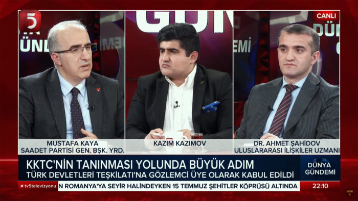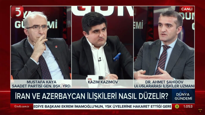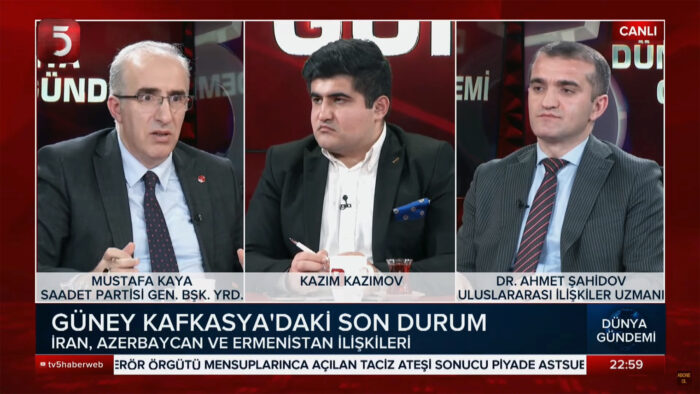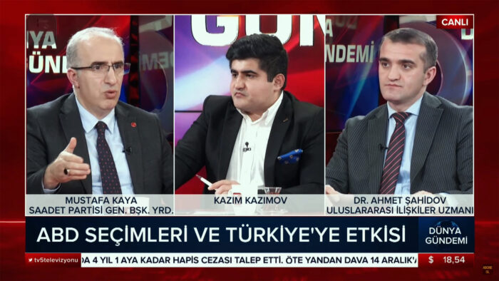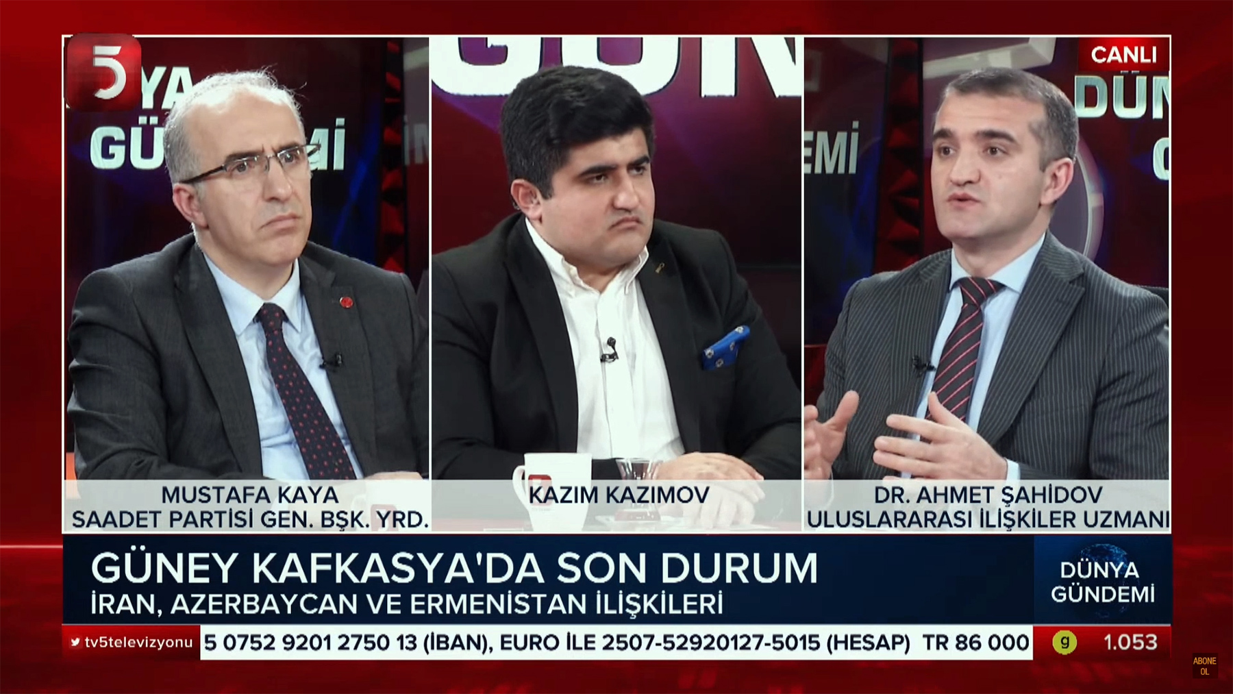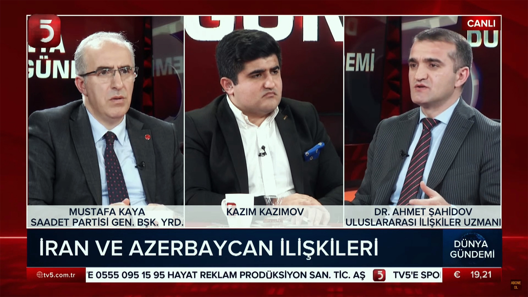 Jurnalist Kazım Kazımovun suallarına Səadət Partiyasının sədr müavini Mustafa Kaya və beynəlxalq əlaqələr üzrə mütəxəssis Dr. Əhməd Şahidov cavab verir.