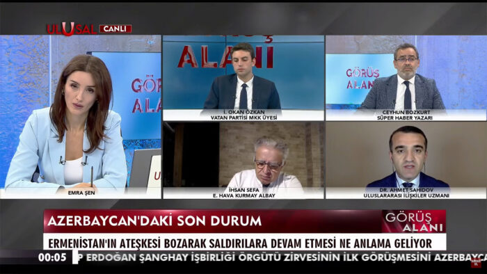 Siyasi şərhçi Əhməd Şahidov Ulusal Kanal Televiziyasında Emra Şen`in aparıcılığı ilə yayımlanan “Görmə bucağı” proqramına qatılaraq bölgədəki son vəziyyətlə bağlı açıqlamalar verib.