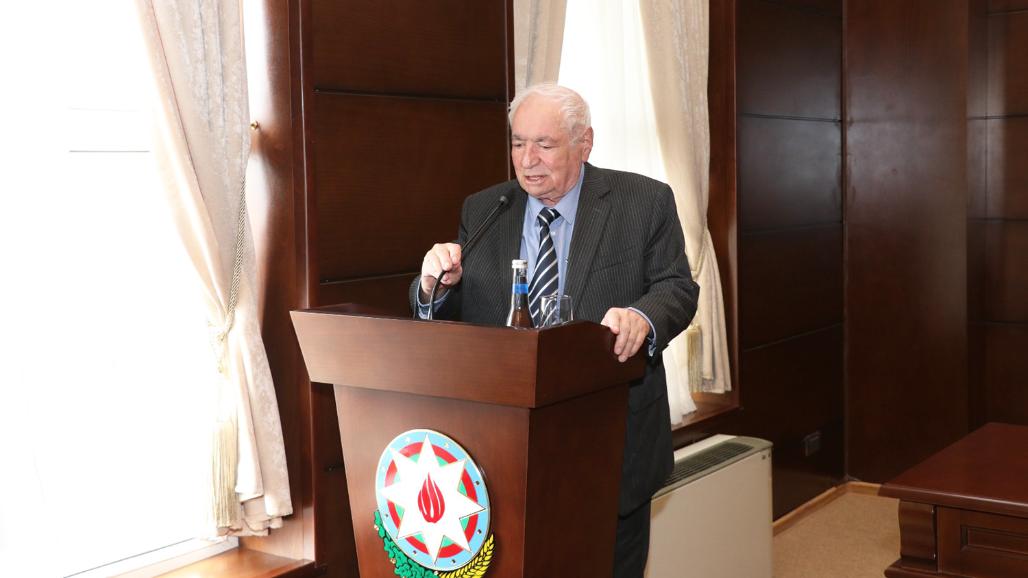 Nəhəng tarixi şəxsiyyət Heydər Əliyevin mənalı həyatından və çoxşaxəli fəaliyyətindən geniş bəhs etməklə çıxışını davam etdirən Hərbi prokuror Xanlar Vəliyev bildirib ki, şərəfli ömür yolunu ölkəmizin tərəqqisinə və millətimizin parlaq gələcəyinə həsr edən Ümummilli Lider dövlətçiliyin ideoloji-siyasi əsaslarını yaratmaqla, xalqı əsl müstəqilliyə qovuşduraraq hafizələrdə əbədiyaşarlıq qazanıb. Azərbaycanın gələcəkdə dövlət müstəqilliyinin elan edilməsi üçün real əsaslar, yeni suveren ölkə kimi qarşılaşa biləcəyi mühüm məsələlərin həlli üsulları hələ Ulu Öndər Heydər Əliyevin sovet hakimiyyəti illərində respublikamıza birinci rəhbərliyi dövründə formalaşdırılıb. Ölkəmizin çox çətin bir durumunda yalnız dahi şəxsiyyət Heydər Əliyevin Azərbaycanın müasir tarixinin həlledici dönüş nöqtəsi hesab edilən böyük qayıdışından sonra hər şeyin müsbətə doğru dəyişdiyini vurğulayan Hərbi prokuror Xanlar Vəliyev qeyd edib ki, vətəndaş müharibəsinin, eləcə də müstəqilliyimizin itirilməsi təhlükəsinin qarşısı qətiyyətlə alınıb, cinayətkar dəstələr zərərsizləşdirilib, separatçı meyillərə son qoyulub, ölkənin iqtisadi və siyasi böhrandan xilasını təmin edən digər zəruri tədbirlər görülüb, bununla da Azərbaycan sürətli inkişaf yoluna qədəm qoyub.