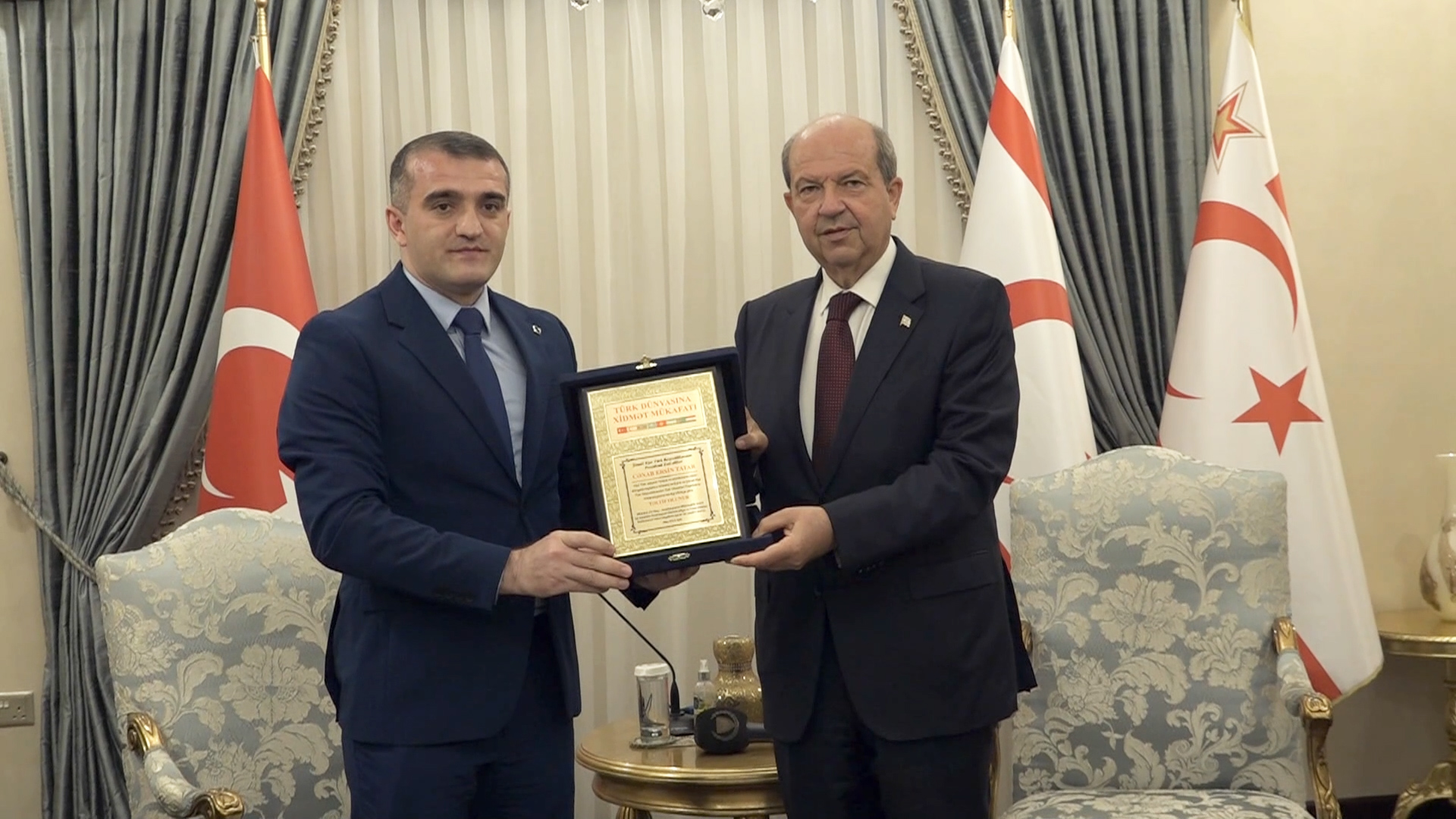 Azərbaycan Demokratiya və İnsan Haqları İnstitutunun rəhbəri Əhməd Şahidov prezident Ersin Tatara “Türk Dünyasına Xidmət” mükafatını təqdim edərək, KKTC-nin müstəqil dövlət olaraq beynəlxalq aləmdə öz yerini tutması üçün son illərdə göstərilən səyləri və töhfələri yaxından izlədiyini bildirib.