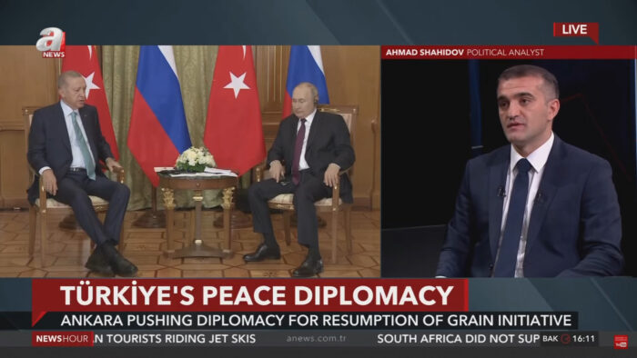 Siyasi şərhçi Əhməd Şahidov ANews kanalına müsahibəsində Soçi sammitinin Türkiyə-Rusiya münasibətlərinə təsirlərini, dünya taxıl böhranını və Ukraynadakı müharibəni şərh edib.