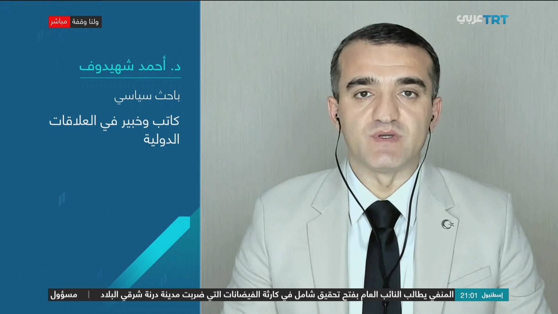 Bu mövzu TRT Arabia kanalının “Wa lana waqfa” proqramında müzakirə olunub. Müzakirələrdə iştirak edən araşdırmaçı-yazar Dr. Basel Haj Jasem və siyasi şərhçi Dr. Əhməd Şahidov Cənubi Qafqazda davam edən gərginliyin bölgəsəl müharibəyə çevrilmə ehtimalı üzərində fikir mübadiləsi aparıblar.