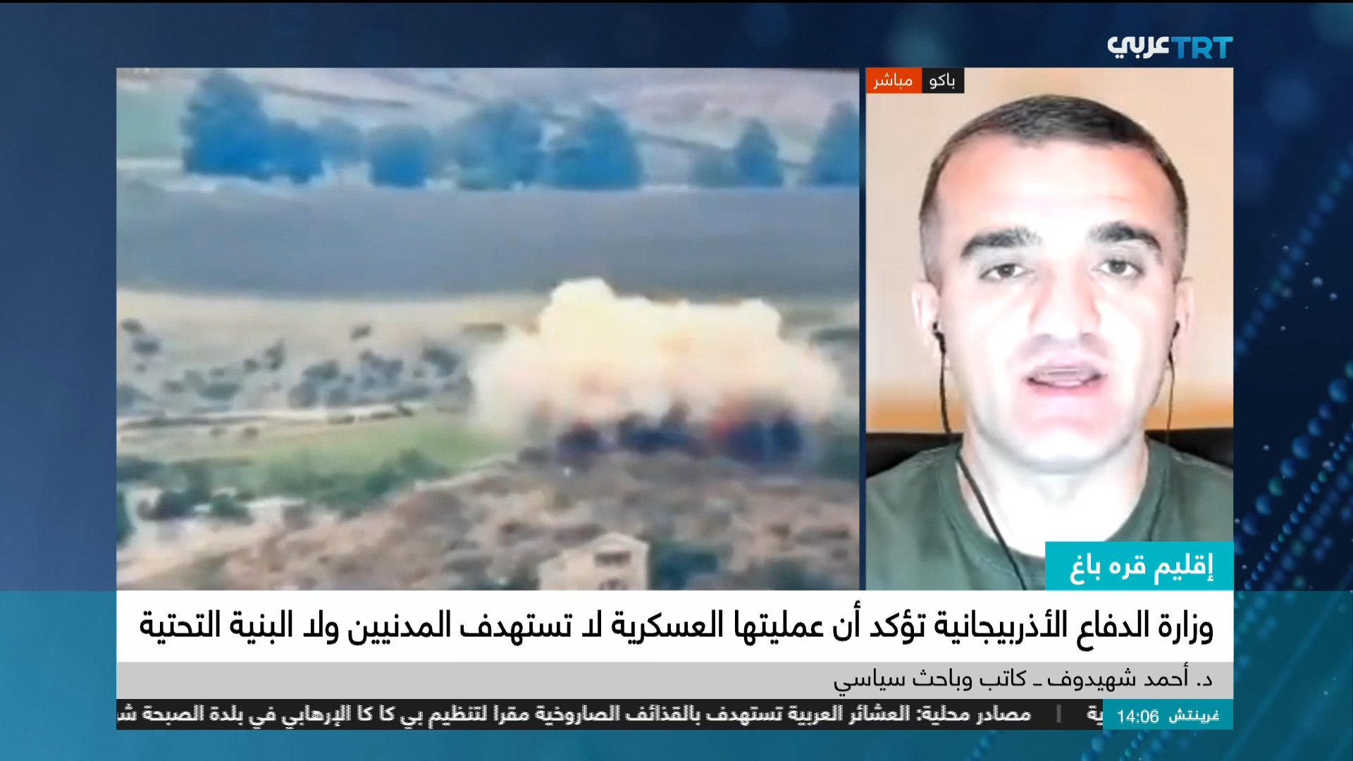 “Beynəlxalq hüquq Azərbaycanın tərəfindədir” – Əhməd Şahidov TRT Arabia kanalında Qarabağdakı hərbi əməliyyatları şərh etdi