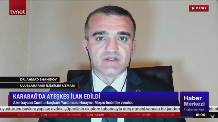 Türkiyənin TVNET Televiziyasının “Haber Merkezi” proqramında aparıcı Cüneyit Özdemir`in suallarını cavablandıran siyasi şərhçi Əhməd Şahidov Azərbaycan Ordusunun Qarabağda 23 saat davam edən antiterror əməliyyatları nəticəsində bölgədəki bütün silahlı erməni terrorçularının təslim olduğunu və bununla da Azərbaycanın Zəfər qazandığını bildirib.
