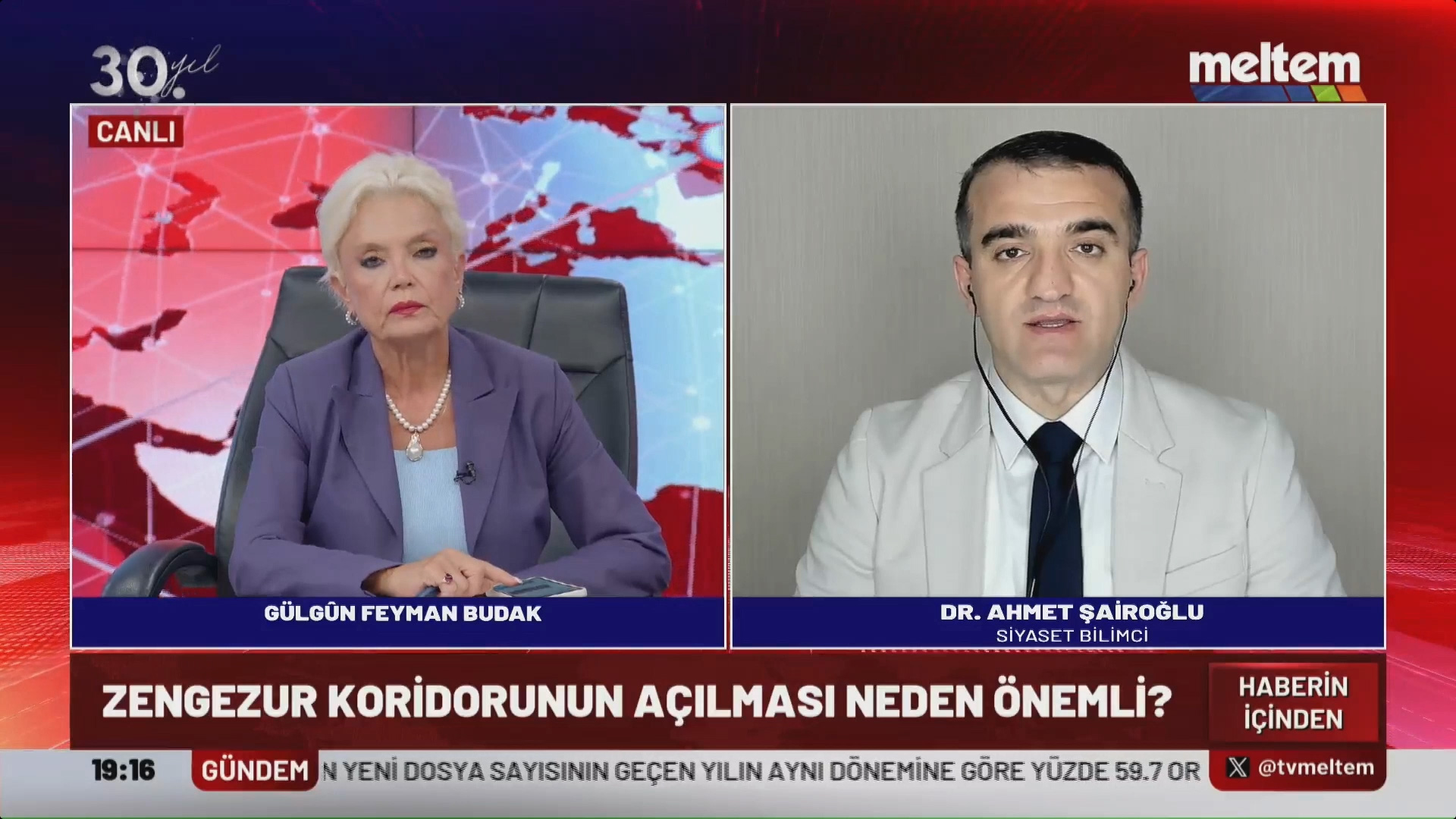 Meltem Televiziyasının “Haberin İçinden” proqramına danışan siyasi şərhçi Əhməd Şahidov Zəngəzur Koridoru ilə bağlı fikirlərini bölüşüb və aparıcı Gülgün Feyman Budak`ın suallarını cavablandırıb.