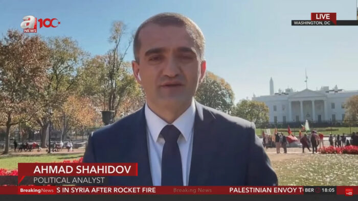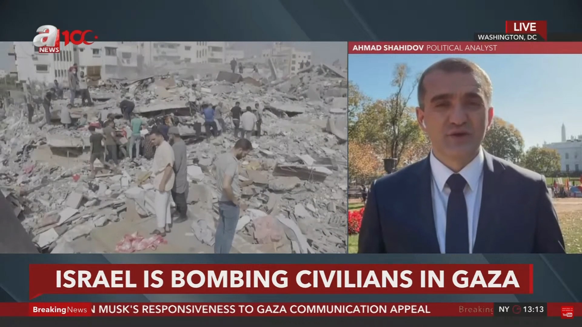 Hazırda Vaşinqtonda olan siyasi şərhçi Əhməd Şahidov ABŞ`ın İsrail-Fələstin münaqişəsi ilə bağlı mövqeyini şərh edib və Fələstində hələ də davam edən qətliamın bir səbəbinin də Ağ Evin açıq şəkildə İsrailə dəstək verməsi olduğunu bildirib.