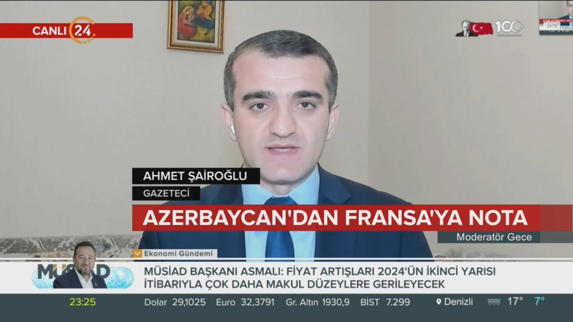 Mövzu ilə bağlı detalları Kanal24 Televiziyasında yayımlanan “Moderatör Gece” proqramına danışan siyasi şərhçi Əhməd Şahidov Paris və Bakı arasındakı siyasi gərginliyin səbəblərini şərh edib və jurnalist Erkan Kol`un suallarını cavablandırıb.