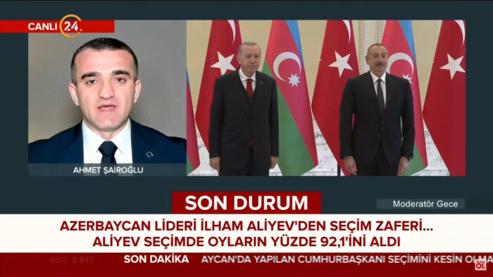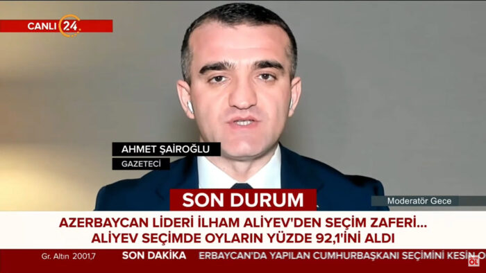 7 fevral seçkiləri ilə bağlı Kanal24 Televiziyasına geniş müsahibə verən siyasi şərhçi Əhməd Şahidov bildirib ki, ölkə vətəndaşlarının əksəriyyəti seçkilərdə İlham Əliyevə səs verib.