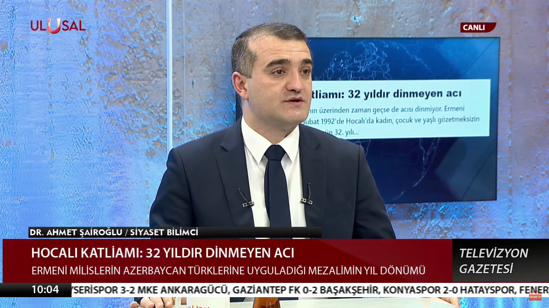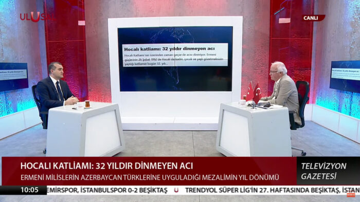 Xocalı Soyqırımının üzərindən 32 il keçsə də, ağrılar azalmır. Bu gün, 1992-ci il fevralın 26-da erməni silahlı qüvvələrinin Xocalıda törətdiyi qətliamın 32-ci ildönümüdür. Xocalı soyqırımının 32-ci ildönümü ilə bağlı Türkiyənin Ulusal Kanal Televiziyasında jurnalist Halil Nebilerin suallarını cavablandıran politoloq Əhməd Şahidov o dəhşətli günlərdən danışıb.