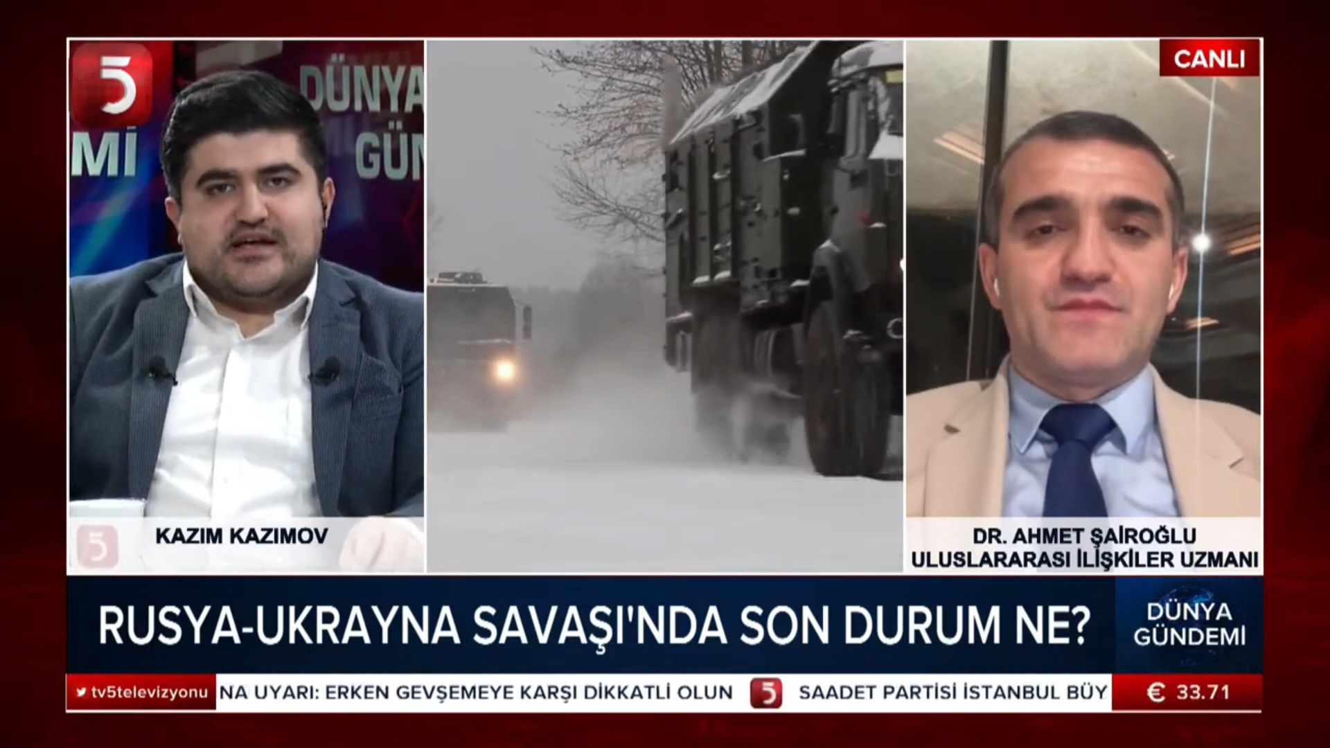 Mövzu ilə bağlı Türkiyənin TV5 Televiziyasına geniş müsahibə verən politoloq Əhməd Şahidov Qərbin Ukrayna-Rusiya müharibəsi ilə bağlı planlarına münasibət bildirib və jurnalist Kazım Kazımovun suallarını cavablandırıb.