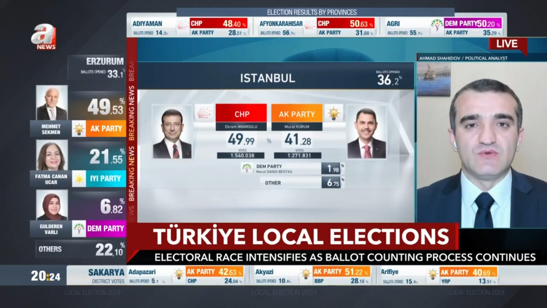 Bugün Türkiyə Respiblikasında yerli bələdiyyə seçkiləri keçirilib. Türkyə bir daha dünyaya demokratik və şəffaf seçki nümunsi göstərdi.