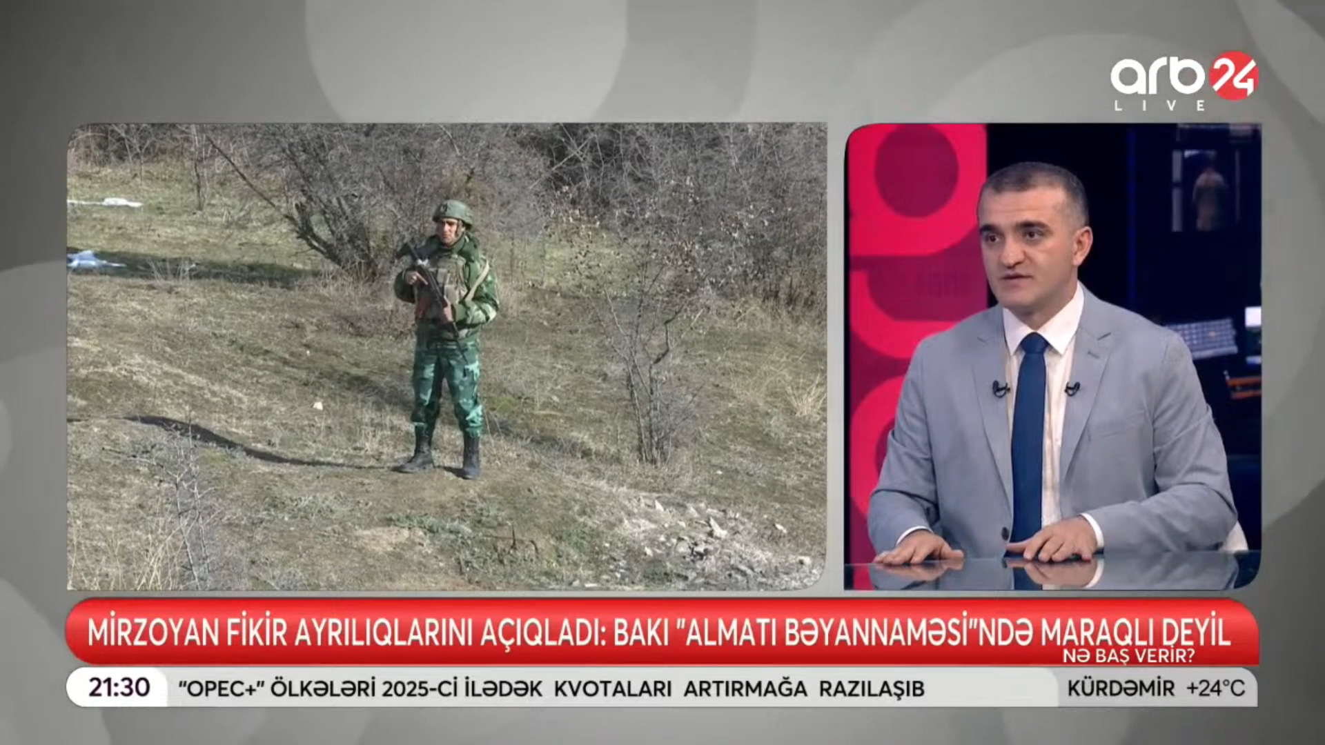 ARB24 Televiziyasının “Nə baş verir?” proqramında Ermənistanda davam edən etiraz aksiyaları fonunda Azərbaycan və Ermənistan arasında sərhədlərin delimitasiyası prosesi və iki ölkə arasında sülh müqaviləsinin imzalanması məsələsi müzakirə olunub.