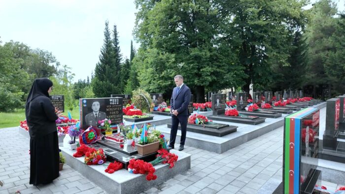 113 saylı Qax-Şəki seçki dairəsindən deputatlığa namizəd Əhməd Şair oğlu Şahidov bugün Qax rayonu Şəhidlər Xiyabanını ziyarət edib.