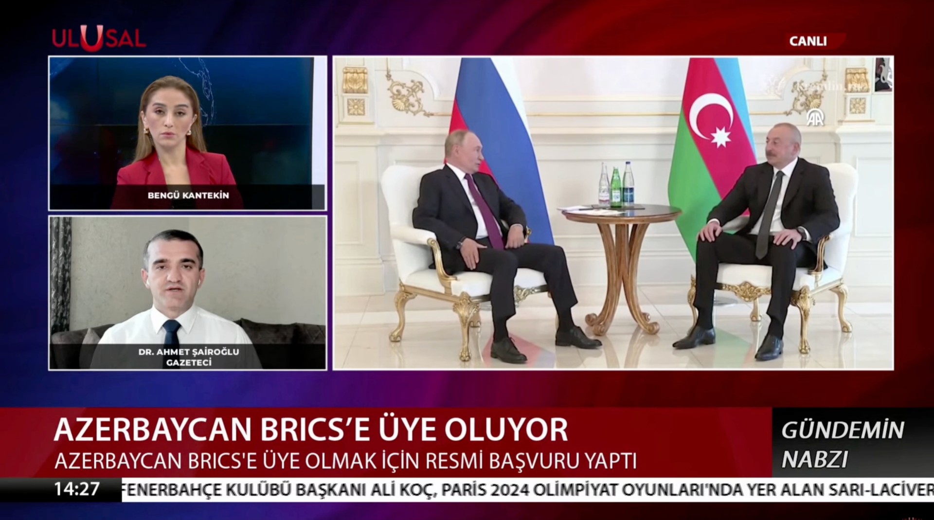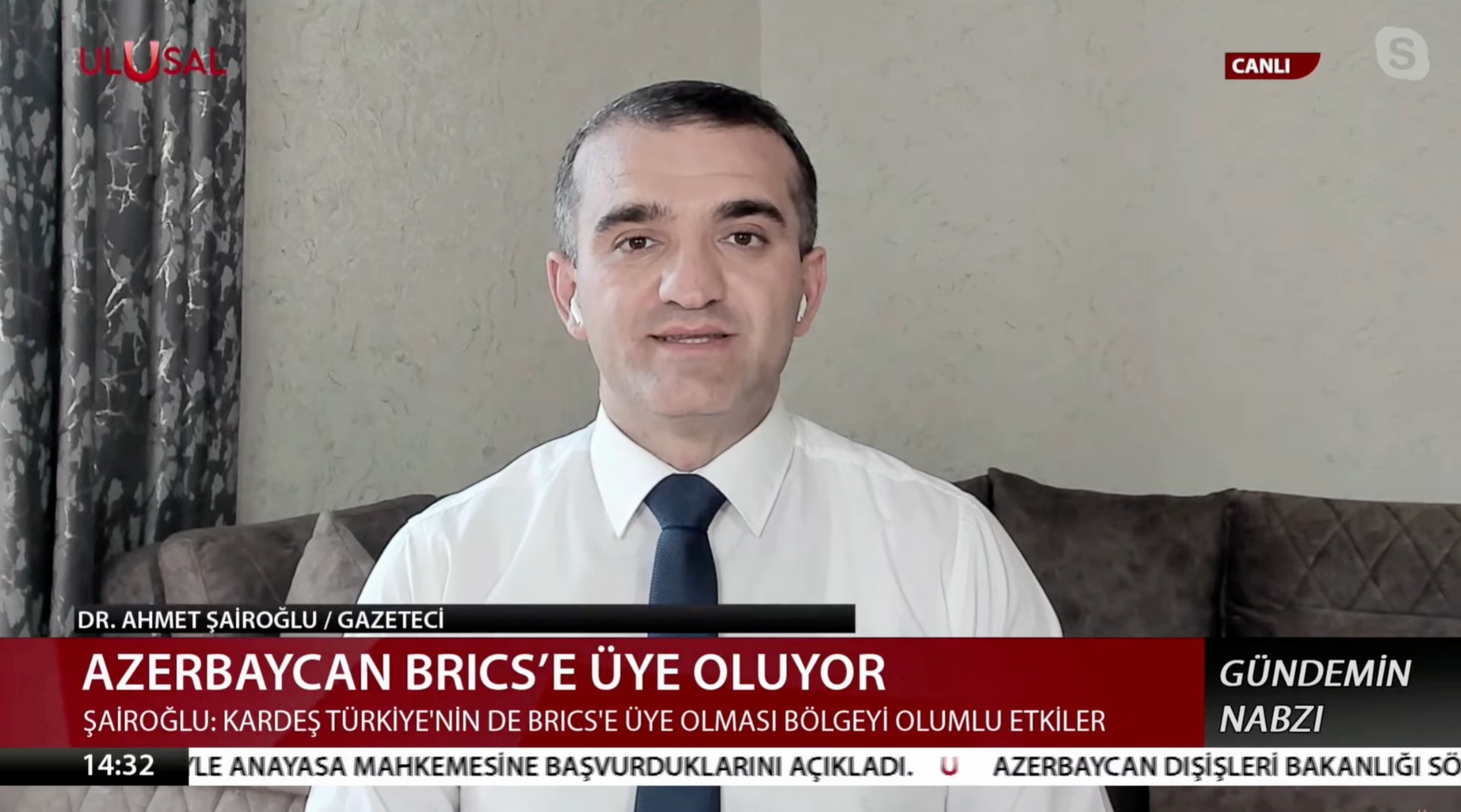 Mövzu ilə bağlı Türkiyənin Ulusal Kanal Televiziyasına müsahibə verən siyasi şərhçi, 113 saylı Qax-Şəki seçki dairəsindən deputatlığa namizəd Əhməd Şahidov BRICS`in iqtisadi-ticari potensialını yüklək qiymətləndirib və Azərbaycanın bu quruma üzv olmasını ölkə üçün uğurlu addım adlandırıb.