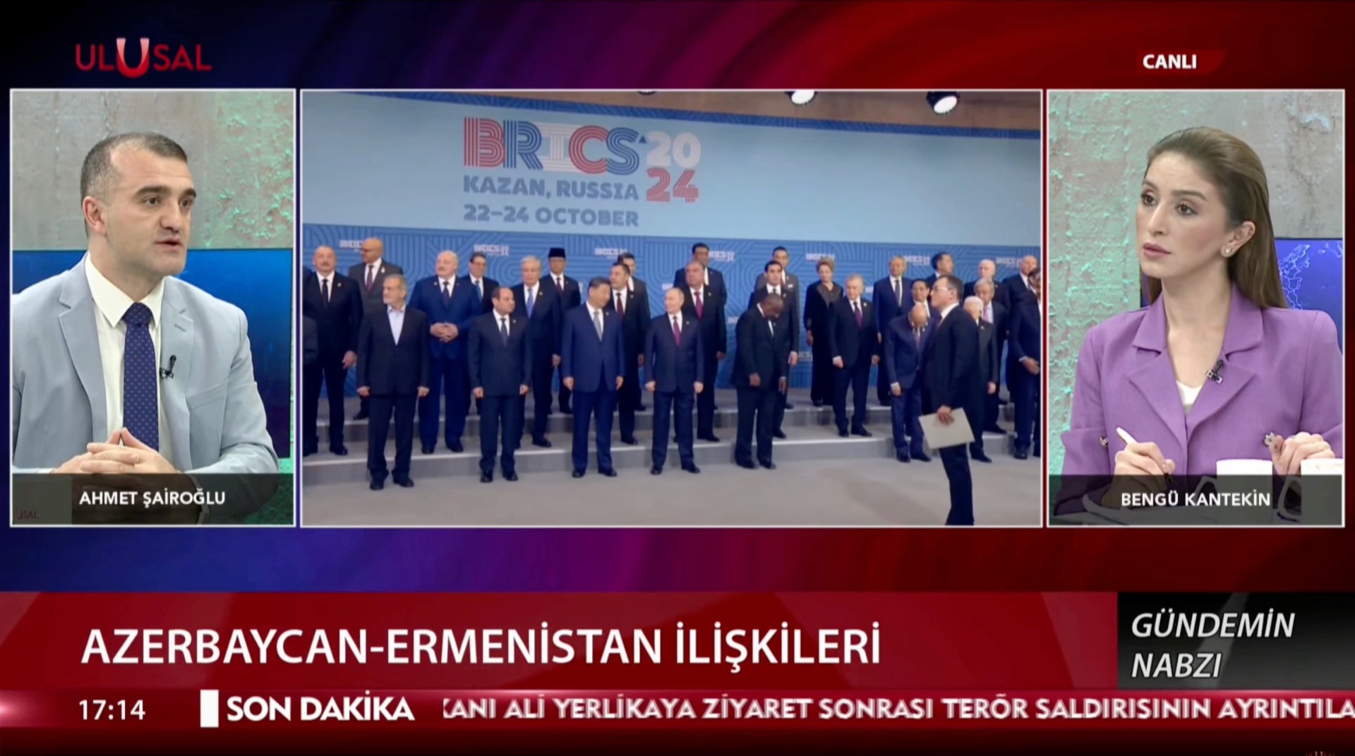 Jurnalist Bengü Kantekin`in suallarını cavablandıran Əhməd Şahidov Kazanda keçirilən BRICS Zirvəsi, Azərbaycan-Ermənistan sülh danışıqları və dünya gündəmini şərh edib.