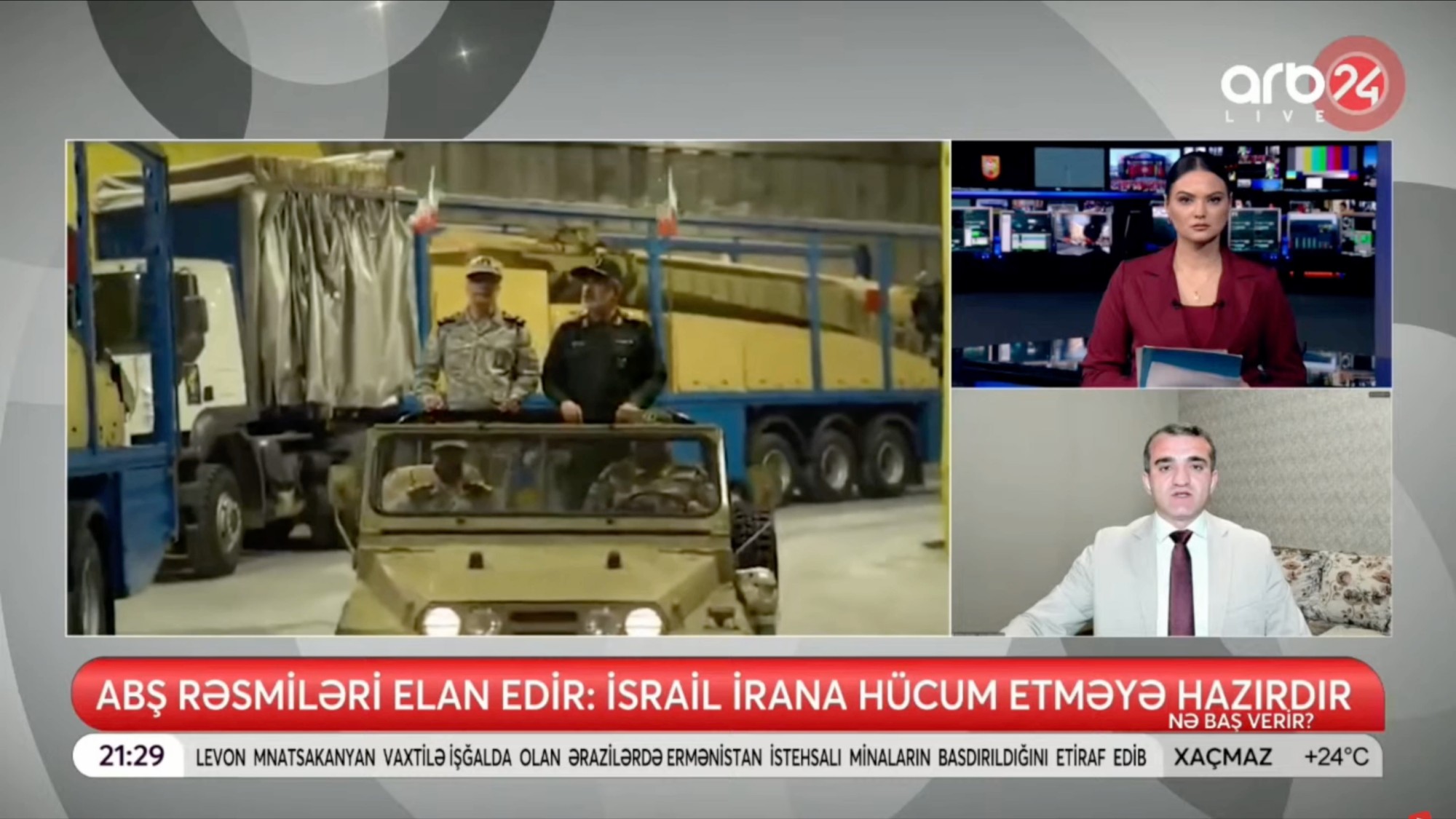 Mövzunun regional təsirləri ilə bağlı ARB24 televiziyasının “Nə baş verir?” proqramında çıxış edən siyasi şərhçi Əhməd Şahidov bildirib ki, İsrail-İran qarşıdurması Cənubi Qafqaz üçün də təhlükəsizliyə təsir edə bilər. Onun sözlərinə görə, mümkün müharibə ssenarisində sərhəd bölgələrində gərginlik, enerji və nəqliyyat dəhlizlərinin təhlükə altına düşməsi ehtimalı yüksəlir.