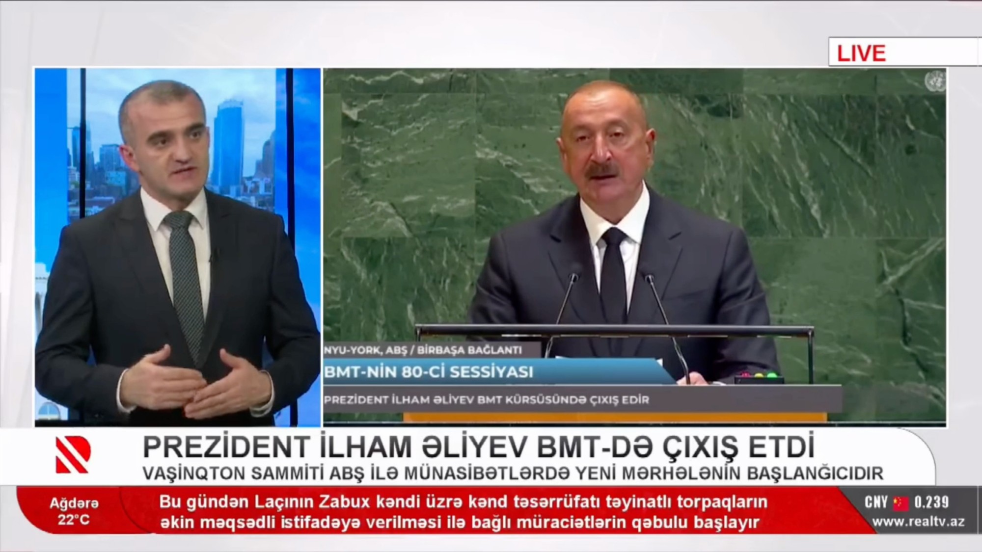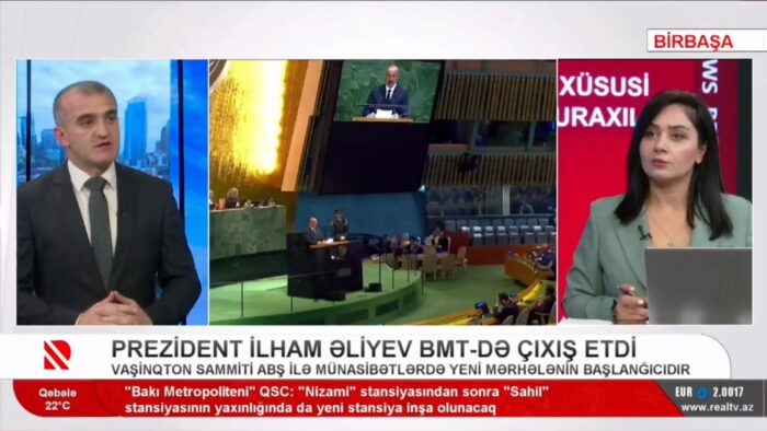 BMT Baş Assambleyasının 80-ci sessiyasında Azərbaycan Prezidenti İlham Əliyevin 25 sentyabrda Nyu-Yorkda etdiyi çıxış ölkə ictimaiyyətində və beynəlxalq aləmdə geniş rezonans doğurub. Dövlət başçısı 44 günlük Vətən müharibəsindən sonra ali tribunadan ilk dəfə çıxış edərək həm müharibədə, həm də sülh prosesində Azərbaycanın qazandığı qələbəni dünyaya bəyan edib. Prezident İlham Əliyev Azərbaycanın beynəlxalq hüquqa uyğun olaraq ərazi bütövlüyünü bərpa etdiyini, sülh gündəliyi ilə yeni bir mərhələyə qədəm qoyduğunu və bu təcrübəni dünya ilə paylaşmağa hazır olduğunu bildirib.
