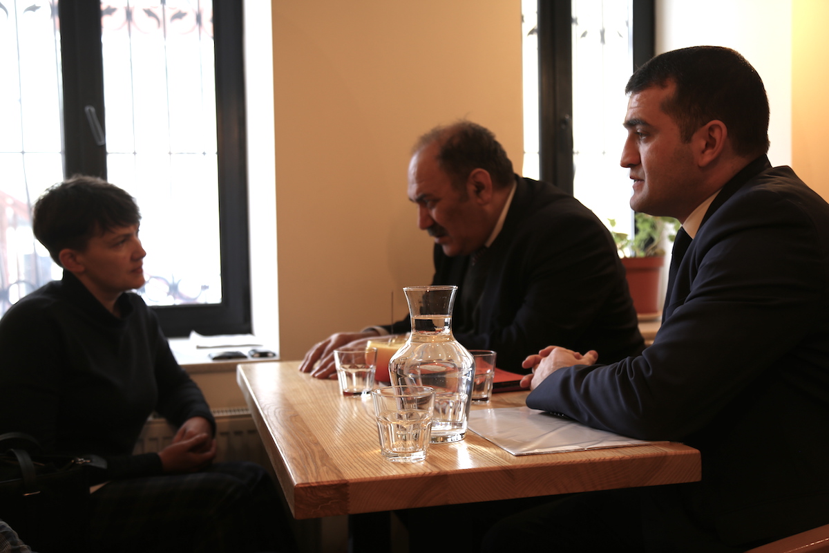 Özünün də Moskvada girovluqda saxlanıldığını və bu sahədə ciddi təcrübəsinin olduğunu bildirən Nadiya Savçenko kəlbəcərli girovlarla bağlı beynəlxalq kampaniya başlatmaq təklifini müsbət qarşılayıb və bu işdə əlindən gələni edəcəyini bildirib. Dilqəm Əsgərov və Şahbaz Quliyev barədə lazımi məlumatları, sənəd və fotoları Nadiya Savçenkoya təqdim edən ADİHİ rəhbəri konkret detalları müzakirə edib.