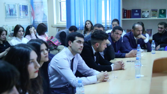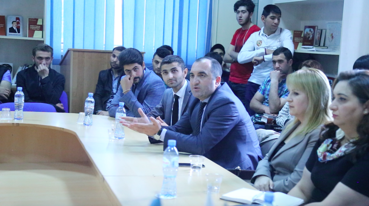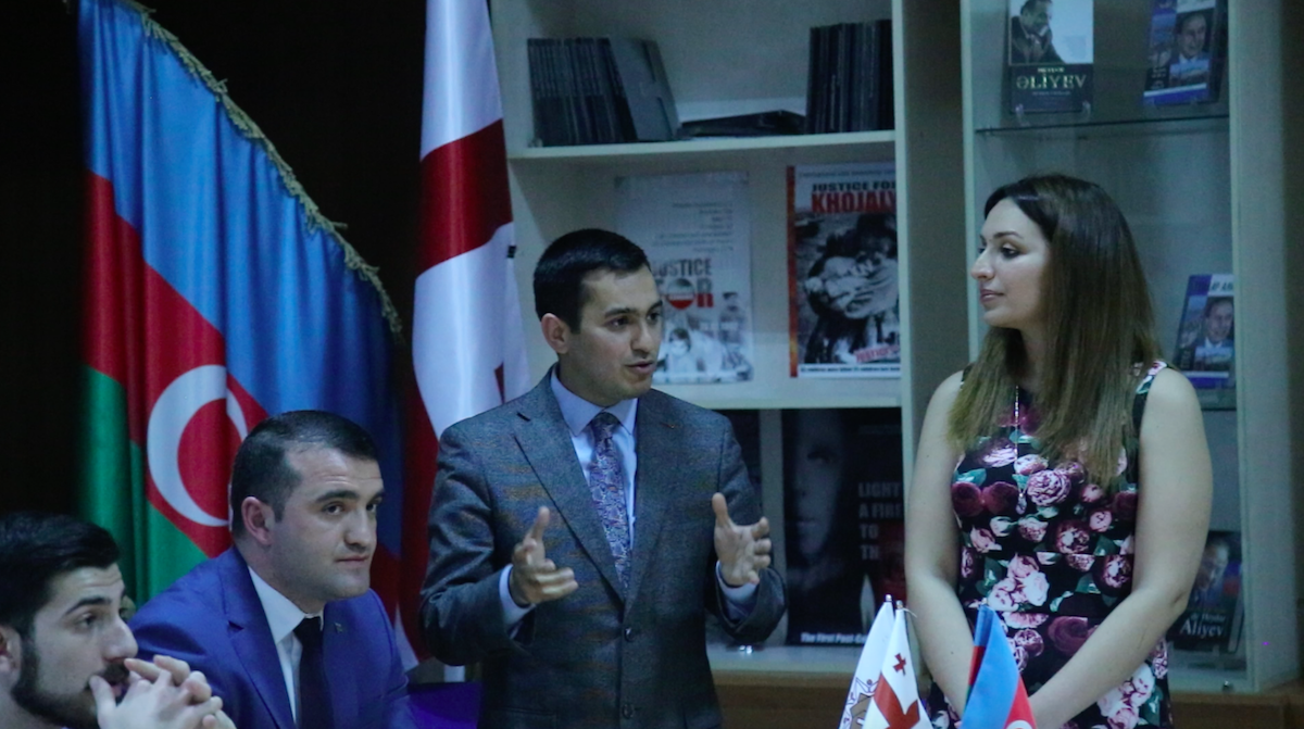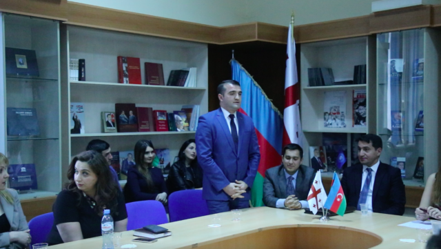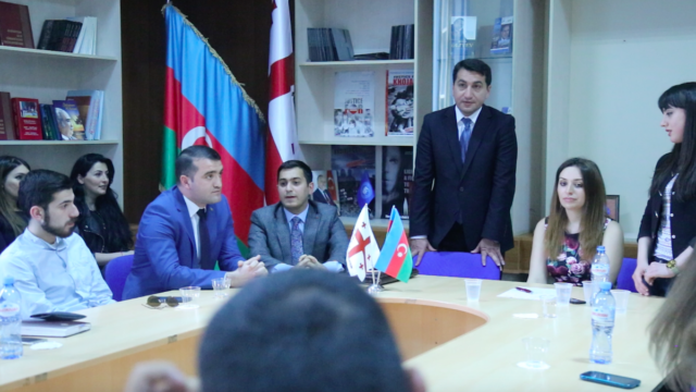 Tədbirdə çıxış edən Azərbaycan Respublikası Xarici İşlər Nazirliyinin mətbuat katibi Hikmət Hacıyev Azərbaycanın xarici siyasət strategiyası, beynəlxalq münasibətlər sistemində Azərbaycan-Gürcüstan əlaqələri və bu əlaqələrin inkişaf etdirilməsinin yolları haqqında çıxış edib. XİN sözçüsü bildirib ki, əsası Ulu Öndər Heydər Əliyev tərəfindən qoyulan müasir Azərbaycan-Gürcüstan dostluğu və tərəfdaşlığı bugün ölkə rəhbərliyi tərəfindən olduqca uğurla davam etdirilir. Hikmət Hacıyev iki ölkə arasındakı münasibətlər, Azərbaycanın xarici siyasət konsepsiyası və Dağlıq Qarabağ münaqişəsi haqqında azərbaycanlı və gürcü tələbələrin suallarını cavablandırıb.